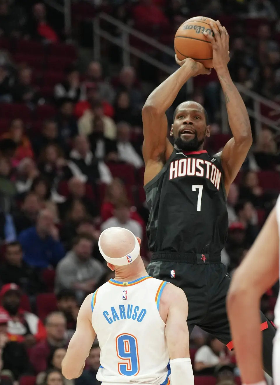 杜兰特赛后采访谈到投篮命中率:我们的投篮命中率只有33%,如果明天背靠背打森林狼我们继续保持这样的表现,三项命中率33%、29%、82%的命中率,我们将再次陷入困境。我非常喜欢我们的比赛态度,无论投篮是否命中,我们都充满能量和专注力,并且始终在防守。教练组和球员们都非常投入,但有时候糟糕的投篮手感是难以克服的。我们希望继续在防守端保持优势,但在进攻端需要更加扎实。我首先从自己做起,要对自己的投篮有信心,然后继续前进。雷霆vs火箭 休斯顿火箭