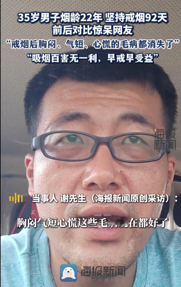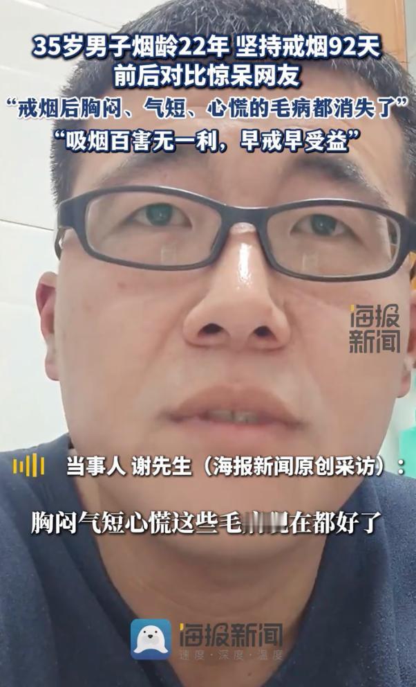谁能想到啊,抽了22年烟的老烟枪,就92天没碰烟,整个人居然像换了个状态! 最