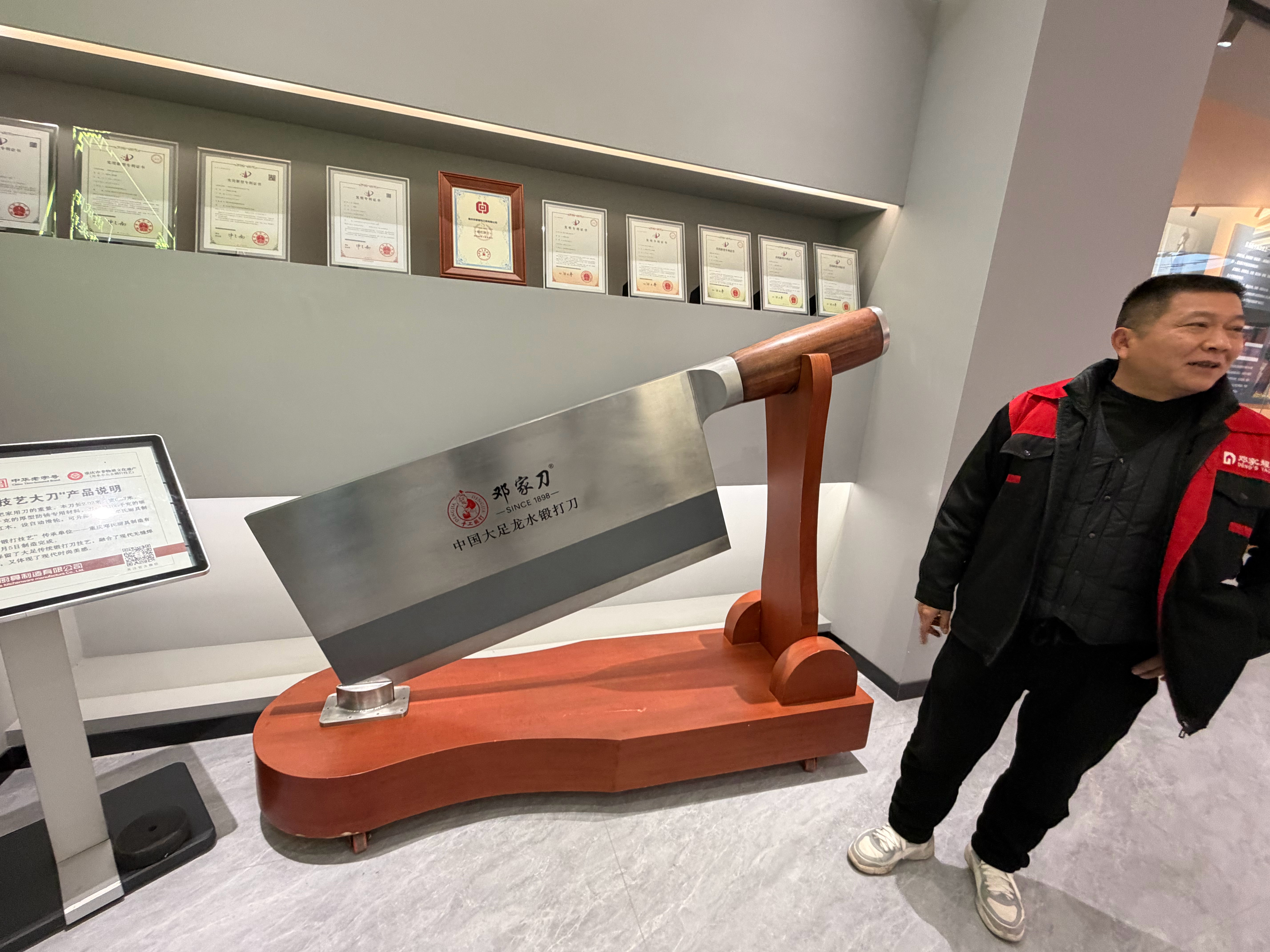 第一次走进大足龙水,调研邓家刀龙水五金,很容易被外界理解成“老手艺”。但真正坐下来聊,才发现这是一条被时间反复打磨过的产业链。邓家刀做的不是情怀,而是一套稳定运转了几代人的工艺体系。从宋元军刀、清代民用刀具,到今天的菜刀、砍骨刀,变的是用途,不变的是“真锻打”。和德国、日本刀具最大的不同,在于它不是从钢板切出刀形再磨薄,而是靠反复锻打,把钢“打活”。老匠人讲得很直白:每多打一遍,钢里的颗粒就更细一点。刀直不直,不靠仪器,靠眼睛。砍骨刀卖98块,还能包邮,看似便宜,其实是工序取舍后的结果;真正复杂的刀,一天只能磨几十把,价格自然上去。这些年也不是没想过自动化。和高校合作过,把空气锤改成滚锻,但始终绕不开一个问题:力的传递方式一变,钢的结构就变了。这类工序,机器暂时替代不了人。邓家刀最有意思的地方,不在“非遗”两个字,而在于它依然在市场里活着。招工不难、网店能卖、铁锅还能当网红产品。这说明,老手艺只要还嵌在真实需求里,就不会轻易消失。