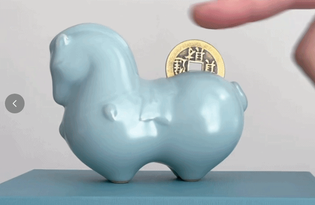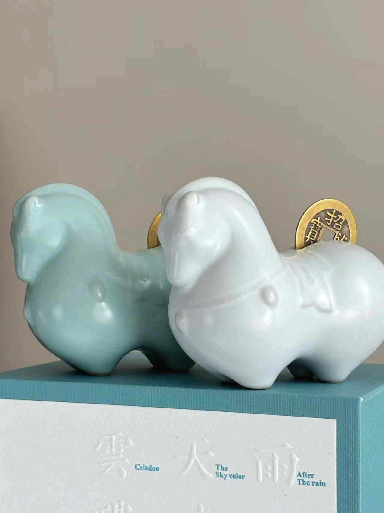 丙午赤马年就要到了,今天给大家安排了一款很有意义的非遗汝瓷“有钱马”,古拙可爱,可以把玩可以摆件可以收藏!马背上的钱币可滚动盘玩,象征“财源滚滚来,越转(赚)越有钱。”,寓意特别好!每一只小马都配有礼盒包装,送人喜庆雅致,有礼有面~