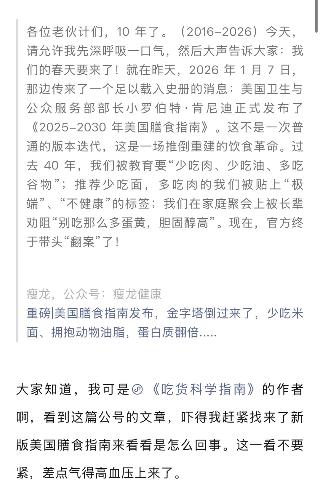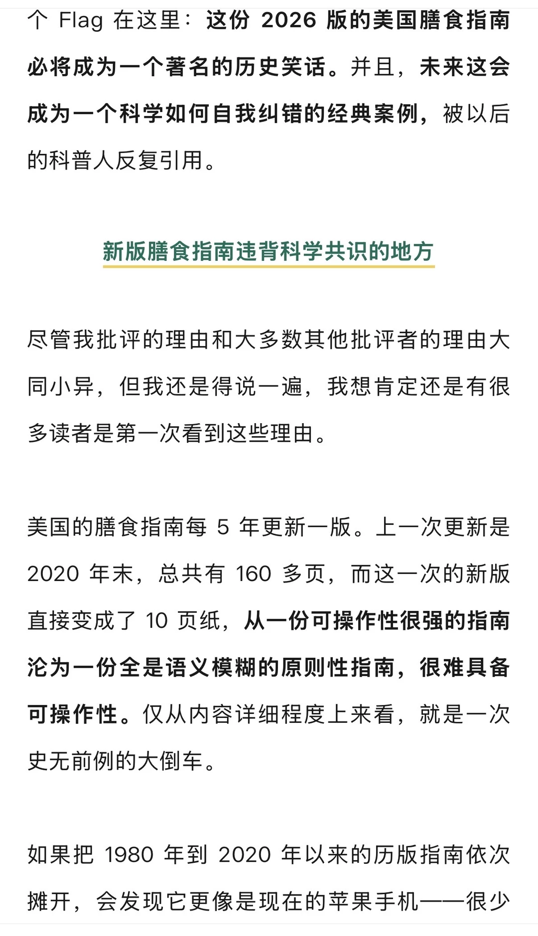 关注汪诘是因为很多年前看过几本他的书,没想到他会讲到这个话题,点进去认真看了也分享给大家。 这份最新膳食指南,或许是“人类社会是个巨大的草台班子”的又一例证。