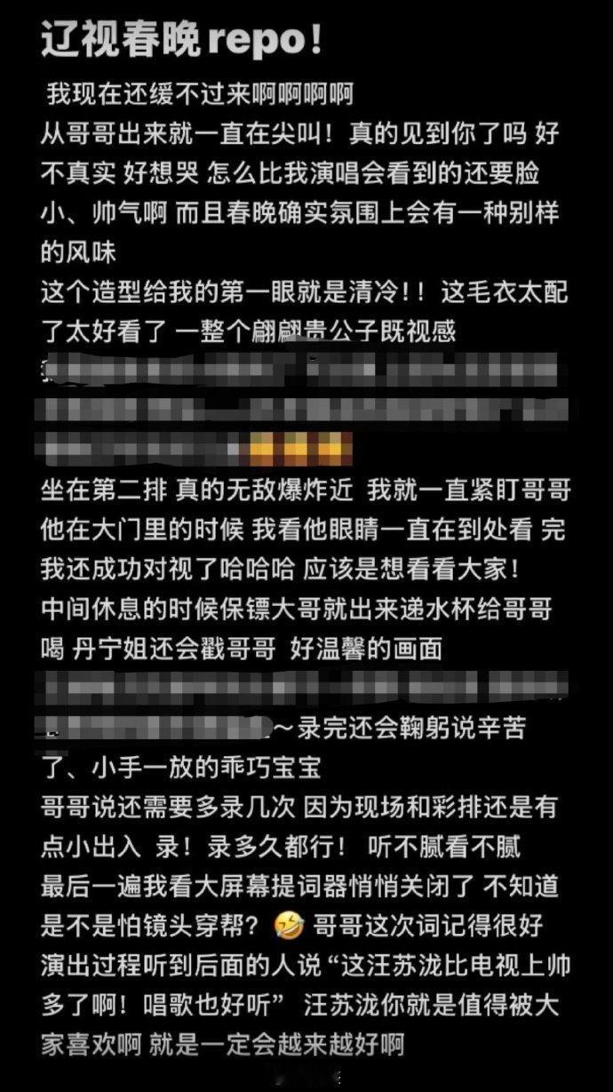 汪苏泷辽宁春晚阵仗也太夸张了 汪苏泷辽宁春晚录制repo刷屏!大集录制现场人气爆棚挤到爆棚,全场呼喊声不断,本土主场buff拉满,他还贴心和大家分享各色好吃的,双向奔赴的温暖感直接拉满!辽宁春晚