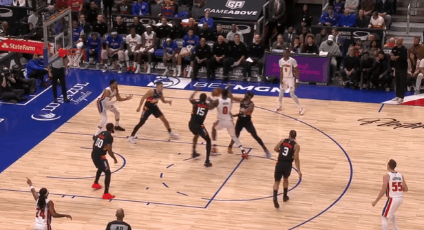 古德温观察:3断1帽&12篮板2前板,防守和拼抢为太阳注入活力图1古德温一线领防紧跟坎宁安,见CC在利弗斯的协防骚扰下传球脱手,立即争抢到球权随即推动反击上篮得手。图2吉莱斯皮转换追身三分不中,古德温冲向篮下高高跃起双手补篮打进。图3古德温先是协防骚扰杜伦,在其出球后再迅速转身兼顾奥萨尔。见奥萨尔接球启动突破,立即转髋使用交叉步紧跟,在奥萨尔合球准备起手终结的瞬间,古德温找准时机精准将球切掉后倒地保护球权。图4阿伦三分命中后,古德温立即骚扰活塞发球,成功和吉莱斯皮合力完成抢断,快到转播镜头都没反应过来。图5罗奥三分不中,古德温判断到篮板落点后立即跃起摘下前场篮板,随后立即传给篮下的吉莱斯皮。图6见艾维接球突破,古德温立即站住协防位置封堵突破路线,艾维出球后再迅速横移上前伸出右手完成破坏。NBA