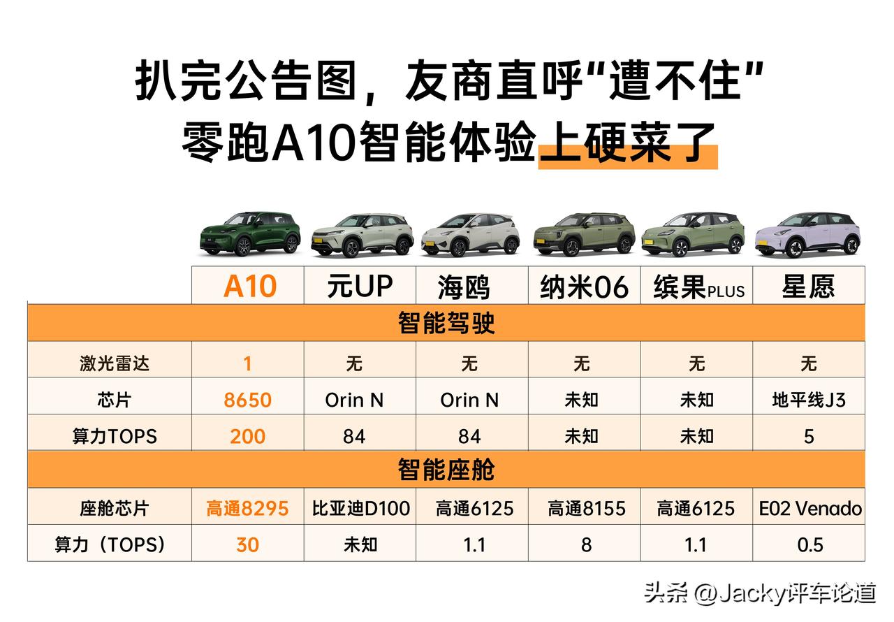 国内公示加海外亮相!零跑A10抢先看,重塑10万级SUV价值标杆? 近日,从工信部了解到,在最新一批新车公示目录中出现了零跑A10的身影,作为零跑A平台首款车型,零跑A10的车长为4270mm,轴距为2605mm,身形精巧、比例舒展,再加上家族式“微笑前脸”与“哈哈尾灯”的设计,你别说,确实有几分宝马MINI的影子。 而这两天,零跑A10又出现在了布鲁塞尔车展上(海外版B03X),以实车品质接受欧洲市场检验,这不仅是对其全球车定位的强力背书,更证明了零跑有能力打造出符合全球品质的精品SUV。 对比欧洲本土同级竞品车型,零跑A10可以说做到了“技术下放、空间越级、品质对标全球”,该车不仅配有同级罕见的8295芯片和激光雷达端到端驾驶辅助系统,更以88.1%的空间“得房率”打破了家用车的空间局限,同时,在大家关心的续航上,零跑A10的纯电续航可达500km,配合快充,即便是长途出行,也没有焦虑。 本次零跑A10的出现,可以说重新定义了10万级SUV市场价值标杆,用“10万级的价格就能拥有30万级的用车体验“我想应该没有人会不喜欢零跑这款新车吧!
