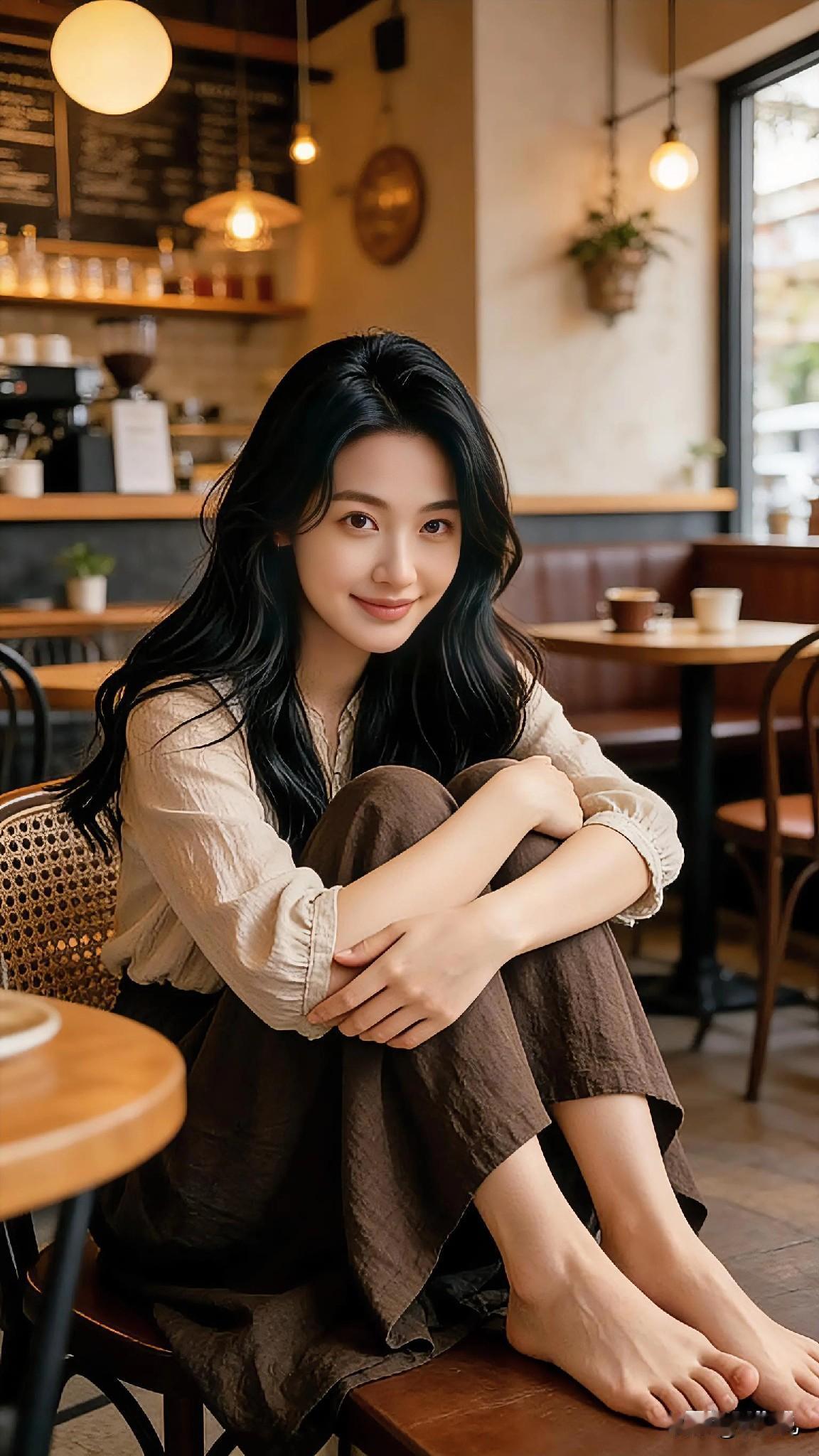 阳光穿过玻璃窗,漫过她身上的亚麻衣衫。点一杯热拿铁咖啡☕️,赤脚蜷在木椅里,让时间在暖香里跟着她的呼吸慢下来。