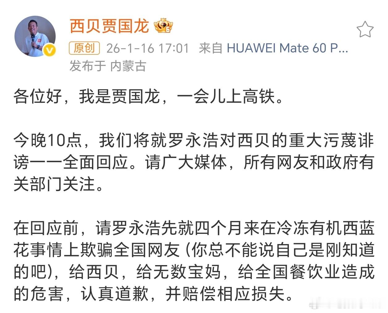 贾国龙今晚10点全面回应 年度大戏啊,今晚有看头了!西贝和罗永浩直播开锤吗???都别睡,high一样宿,热搜流量都是你们的