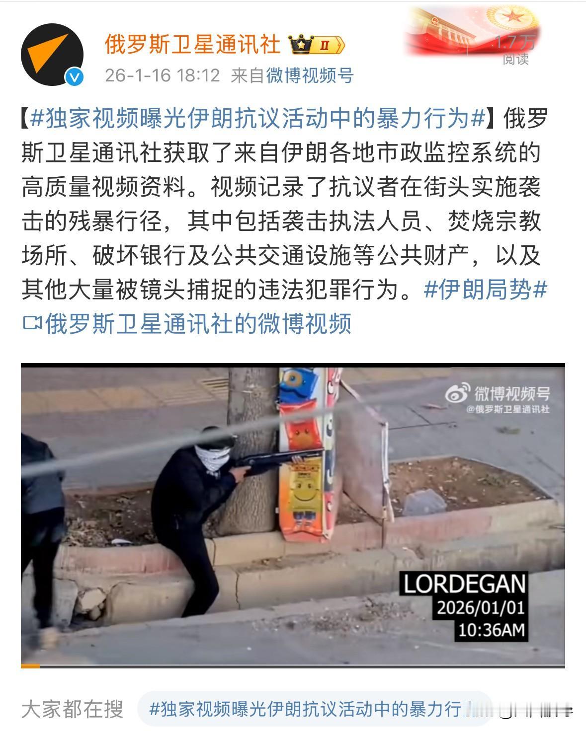 还是俄罗斯媒体有经验,直接调取伊朗市政监控视频,公布伊朗抗议者的残暴行为,他们训练有素,拥有枪支等装备,袭击伊朗执法人员,破坏公共设施,性质完全变了,这里面相当一部分人,接受了外国的培训,反正俄罗斯在这方面,比较有经验,毕竟也在叙利亚作战了那么多年,太熟悉这里面的套路了,甚至还有组织,制造各种袭击现场,还雇佣群众参演,结果俄军直接开到“袭击现场”,找到参演人员,揭露真相,后来由于表演痕迹太明显了,被俄军各种拆穿,美国直接停了那些组织的经费,后来那些组织,也逐渐消失了,估计他们又要在伊朗出现了。