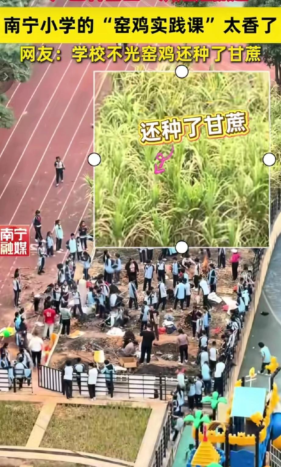 近日南宁那黄小学开展的“窑鸡实践课”。学校里,学生们在操场上参与窑鸡活动,现场十分热闹。同时,学校还种了甘蔗,将劳动实践融入校园生活。这种实践课让学生们在动手过程中学习技能,网友们纷纷感叹广西的教育很有特色,把劳动实践做得很接地气,不仅有窑鸡,还有种植甘蔗等活动,让学生在实践中成长,这样的课程也体现了广西在劳动教育方面的创新,让学生们能体验到别样的校园生活。(来源于@南宁融媒)