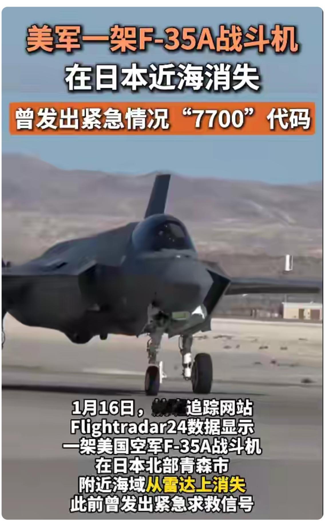 #一架F35A战机在日本海岸失踪#【俄媒:一架美军F-35A战机在日本海岸失踪】
