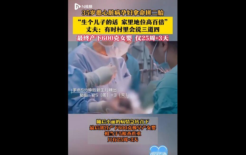 35岁90后女子小丽因第一胎是女孩,不顾先天性心脏病(5级高危)风险执意拼二胎,孕6个月时病情恶化,剖宫产下600克极早产女婴,其丈夫第十天才到院且对病情一无所知。 一个600克的极早产女婴,一位游走在生死边缘的高危孕妇,这场以“拼儿子”为目的的生育冒险,藏着令人窒息的性别偏见与对生命的漠视。 小丽明知自身患有先天性心脏病,却甘愿赌上性命孕育二胎,最终诞下女婴的结局,不仅是个人选择的遗憾,更折射出传统性别观念对女性的束缚,以及部分家庭中责任与敬畏的缺失,每一处细节都引人揪心,更发人深省。 小丽的“执着”,本质上是被传统性别偏见绑架的悲剧。 在“必须生儿子”的执念驱使下,她无视医生的警告,不顾自身5级高危的病情,将生育异化为一场关乎“性别救赎”的豪赌。 这种偏见早已被时代摒弃,却仍在部分人心中根深蒂固,认为只有儿子才能延续香火、圆满家庭,殊不知,每一个生命都值得被平等珍视,无论性别。 对小丽而言,这份执念让她身陷险境,也让刚出生的极早产女婴面临重重生存考验,600克的体重背后,是无尽的健康隐患与护理难题,母子二人都在为这份偏见付出沉重代价。