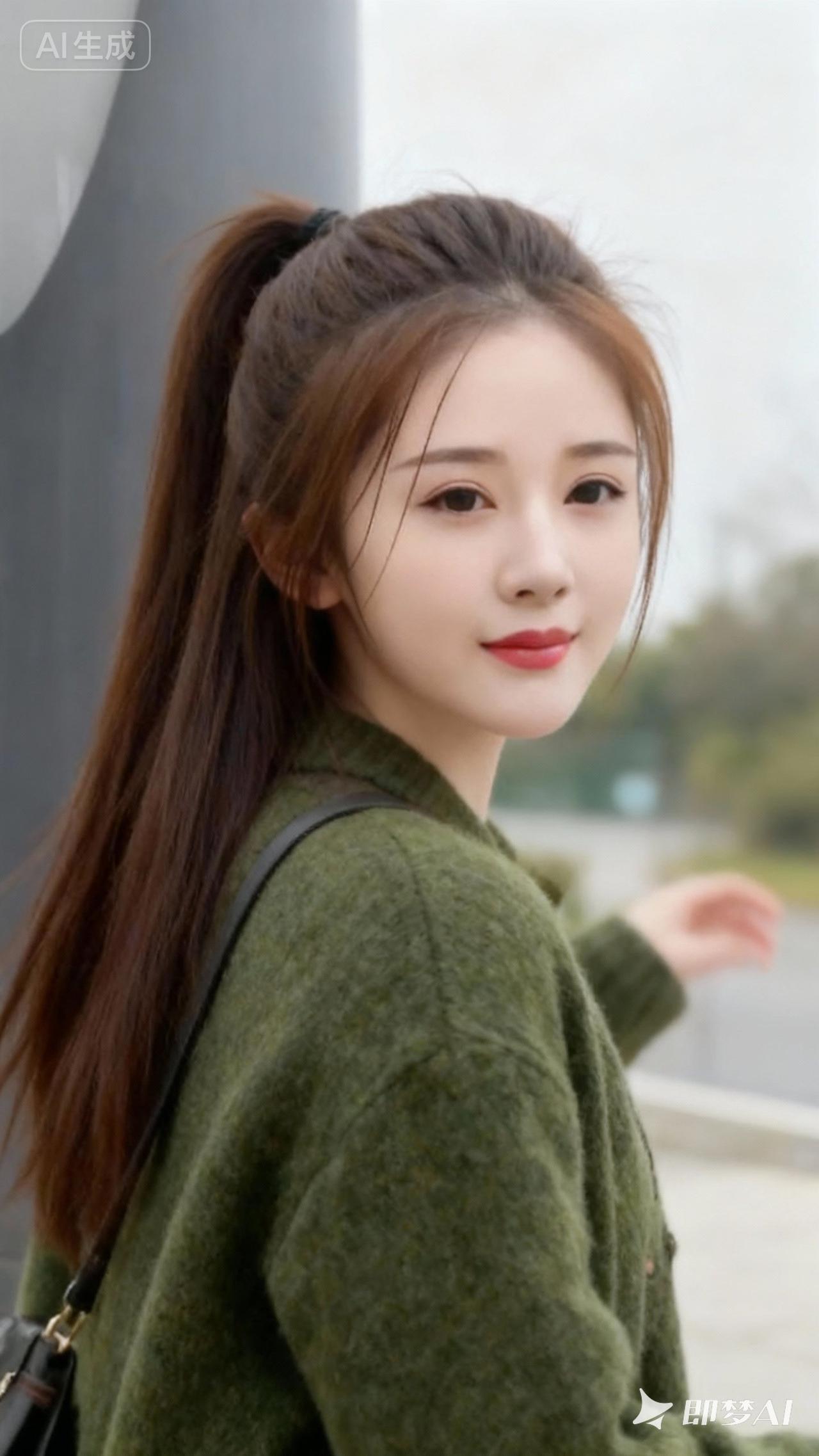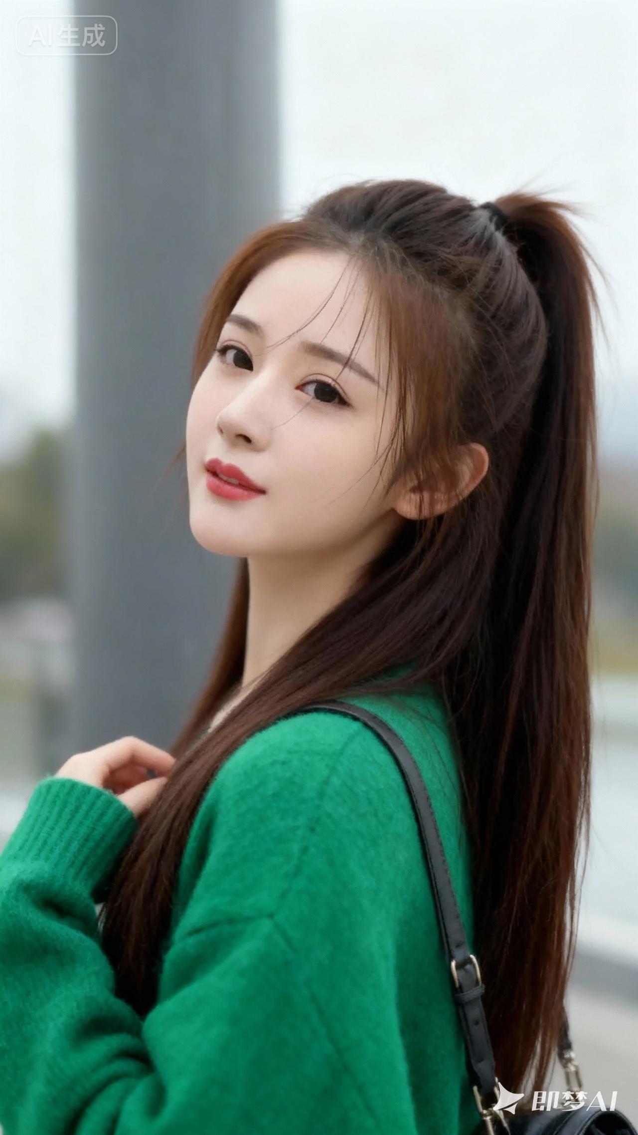 晒图笔记大赛一位东方年轻长发女子,高挑大长腿,唯美迷人,注视着镜头浅笑,冷白皮,