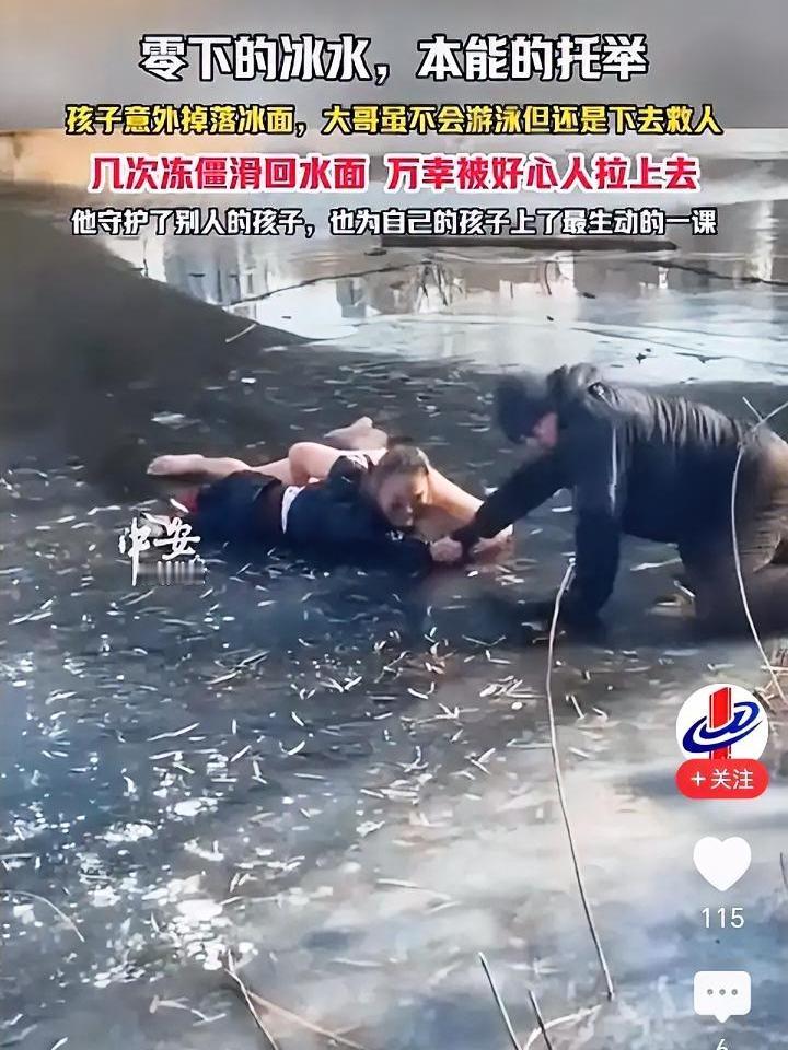 冰裂的脆响撕破午后的宁静,天津的河面上,小男孩的棉袄像朵湿透的云,在水里浮浮沉沉。他的哭声被冷风割得支离破碎,冰窟边缘的裂痕还在“咔嗒”蔓延,周围空无一人——除了急得直搓手的大姨,她的喊声惊飞了树梢的麻雀。 推婴儿车的夫妻刚走到桥头,男人听见“救人”两个字,外套“啪”地甩在车把上。妻子想拉他,却被他挣开:“别管了!”他踩在冰面的瞬间打了个趔趄,鞋底在冰上划出白痕,可手已经伸向水里,抓住了孩子冰凉的胳膊。 “你会水吗?”大姨的喊声带着哭腔。男人没回头,牙齿咬得咯咯响,把孩子往冰沿推时,自己的膝盖突然陷进冰缝,冰水“咕咚”灌进领口。他试了三次想爬上来,每次都重重滑下去,溅起的水花在睫毛上结成细冰。 路人找来的麻绳递到手里时,他的手指已经冻得蜷不拢,却死死攥着绳头,先把孩子往上送。婴儿车里的宝宝不知何时醒了,咿咿呀呀地伸着手,像在给爸爸加油。 裹着毛毯坐在救护车后座,男人冻紫的嘴唇还在抖,却先问“孩子咋样了”。妻子给他搓手时发现,他胳膊上划了道血口子,血珠冻成了小红点,像落在雪地里的梅。 你说,那股连自己都顾不上的冲动,是不是藏在每个人心里的光? 冰窟里的凡人勇为 善良从不看会不会