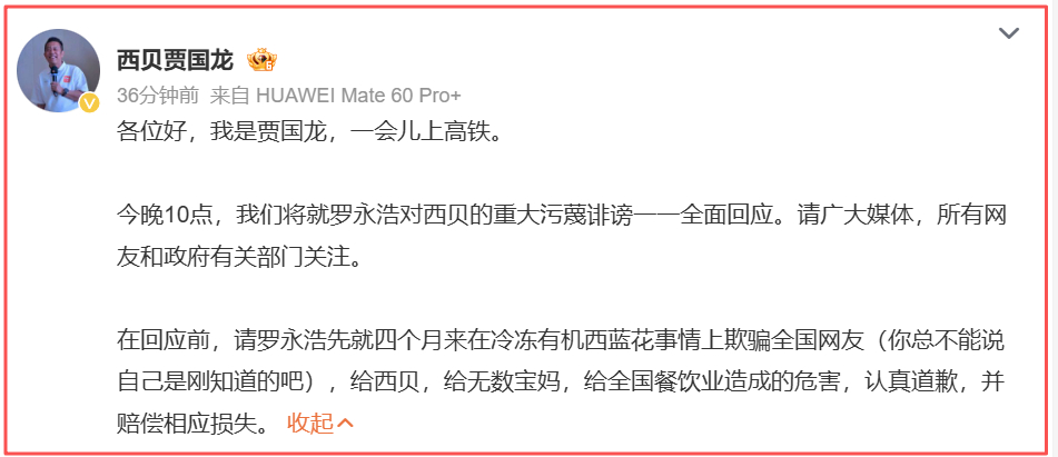 贾国龙罗永浩微博被禁言网信办:组织约架论战。因个人争端和利益冲突等原因,策划或组织网上论战骂战、线下约架,攻击竞争对手,挑起网络戾气,占用公共资源。