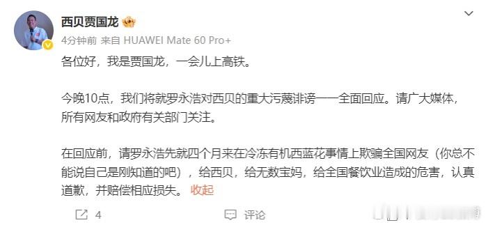 贾国龙:请罗永浩先道歉!今晚将全面回应!