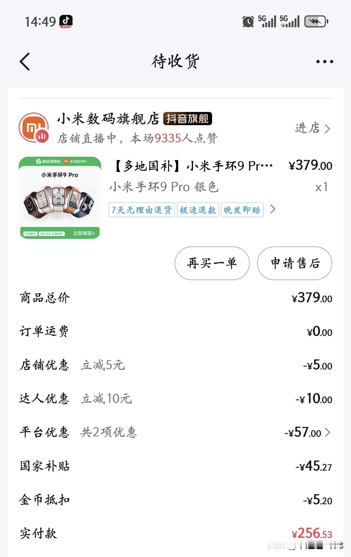 不知道用了小米10 小米手环9pro的朋友感觉好不好呢? 今天终于买到心仪了一个月的手环。 运动起来[加油][加油] 或许是差生文具多,没有运动起来感觉是因为少了个手环,觉得手环能记录一下运动情况会更有动力。 还有就是因为我睡眠不好,也想监测一下,不过据说还是不要戴着睡觉,这样更焦虑,但是还是想试试。 一眼就相中了小米9pro,觉得颜值拉满了。 犹豫着要买还是不要买呢?虽然蹲直播间好一阵子,因为也有不是好评的,所以一直没最终下单,想着荣耀刚还是小米好呢。 同事最近体检身体指标也有点偏差,又让我觉得还是得运动起来。 今天早上终于偶遇了 9 pro的六项优惠,我觉得太神奇了,感觉是最近我遇到了最低价格了,于是果断下单。 我调侃同事都在买手链手镯,我就买个手环吧,督促一下运动,也是很不错吧 有点期待,不知道用了小米手环9pro的朋友感觉好不好呢?