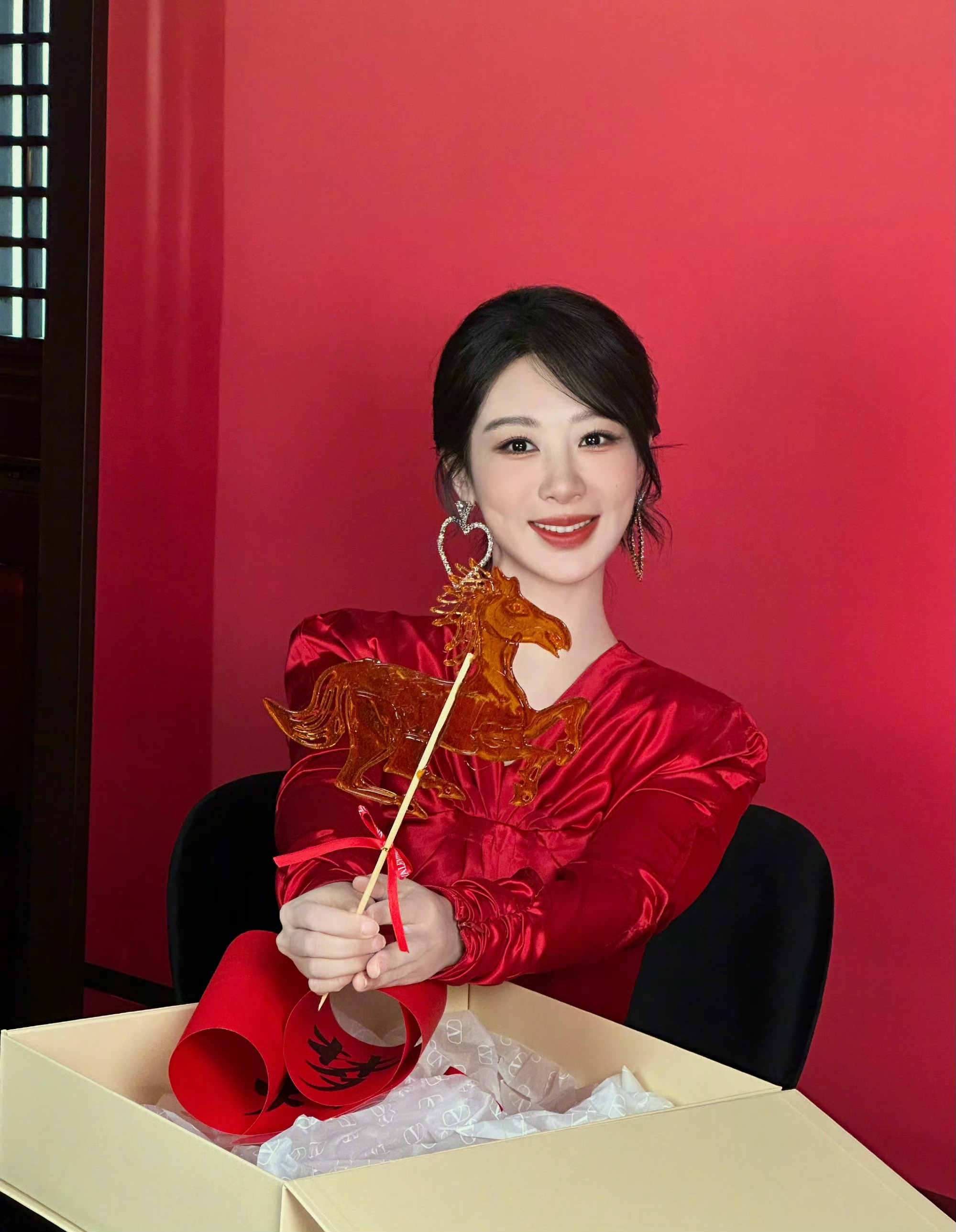 杨紫 in Valentino ❤️🏮🪭 今日品牌活动,一袭红裙配心形钻饰耳环,明媚优雅的华伦女郎,赏花灯、品糖画、写春联… 扑面而来的新春氛围。杨紫红裙好明媚时尚灵感解读穿搭风格