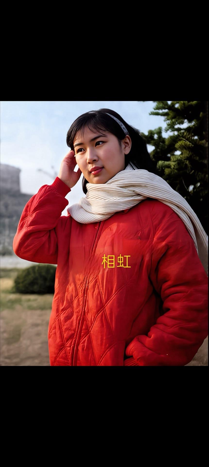 冬日暖阳下,红衣少女轻抚发梢,岁月静好。