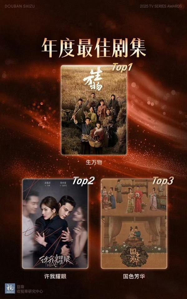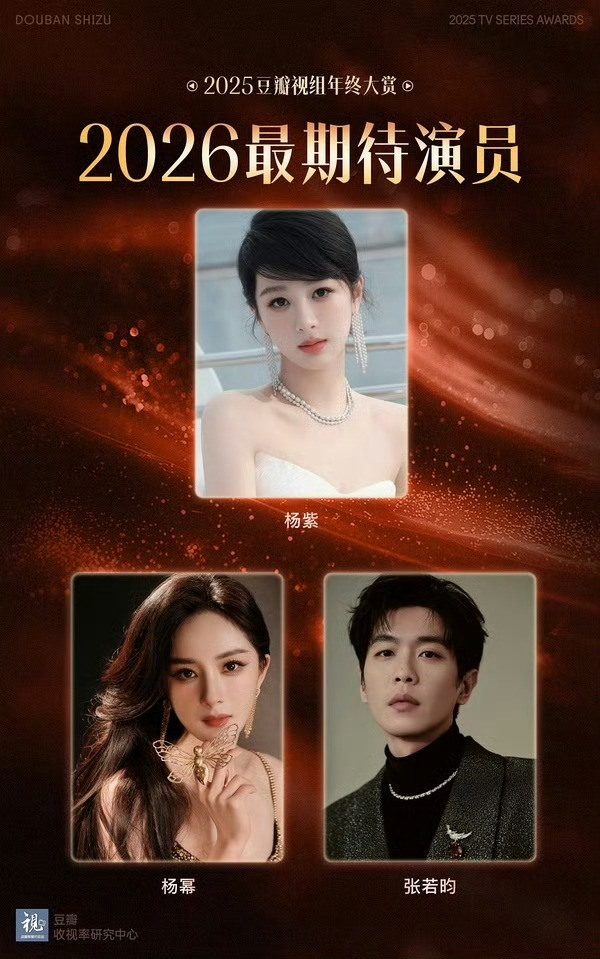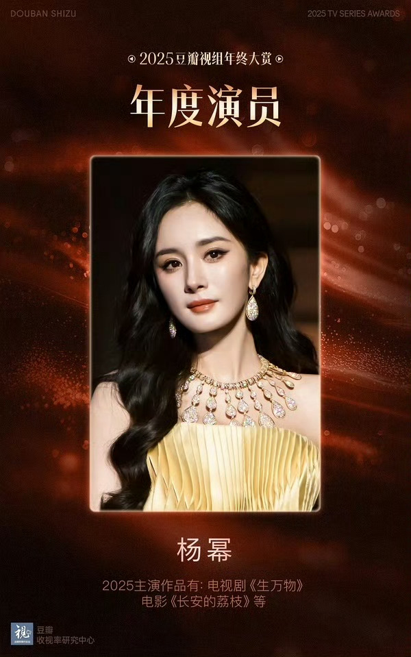 2025豆瓣视组年终大赏年度演员杨幂,年度最佳剧集生万物,2026最期待演员杨紫!