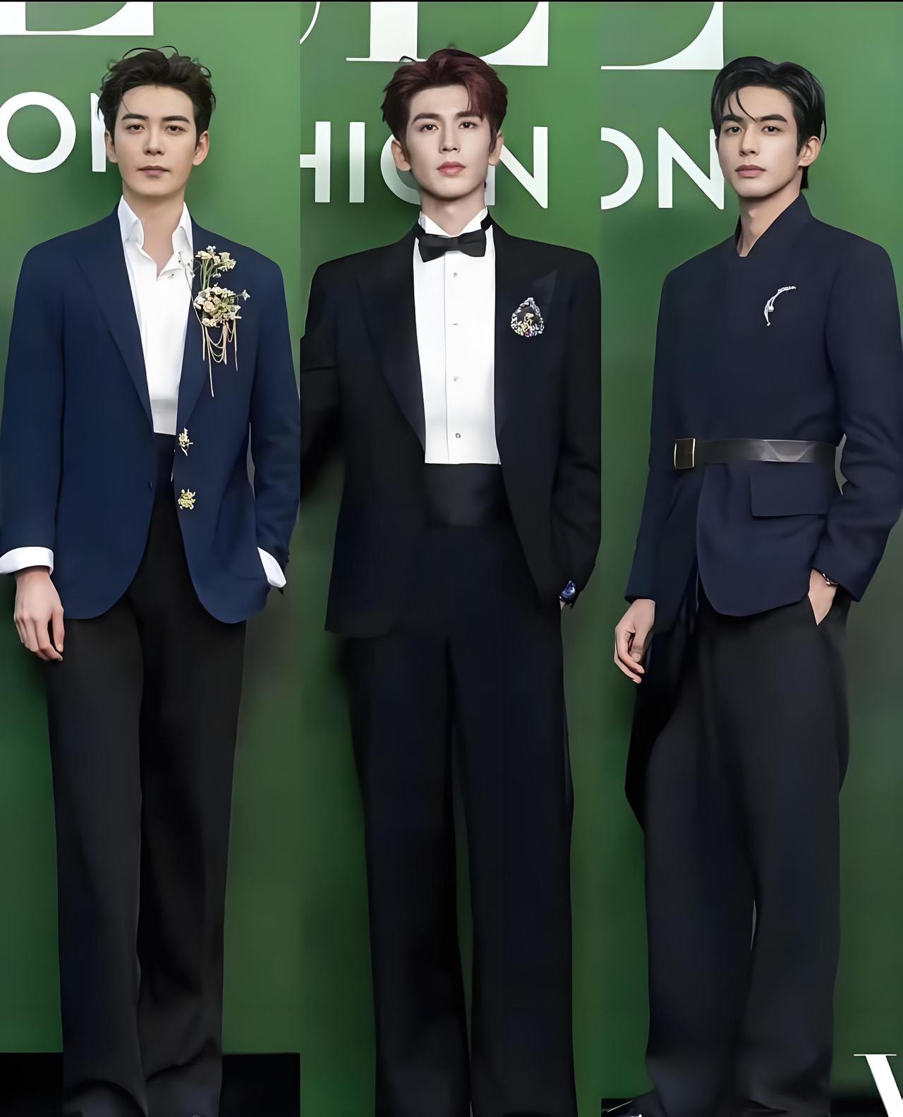 网友笑称这三人是三胞胎[偷笑],但其实差别还是很大的…… 陈星旭的头、脸比其余两位略大略宽一点,整体气质比较man一点。 张凌赫三庭五眼比例最好,五官最精致,温文尔雅。 宋威龙五官最立体最深刻,脸型有点菱形◇,鼻子最挺,嘴比较大。哦,他的腿好像比较短(腿短是相对其他两位而言。图中,三位的上半身都差不多长,下半身只有宋露出鞋子了,需要通过腰带从视觉效果上提高腰线) 三人的共同点是,好像都长了兜风耳[黑线]……