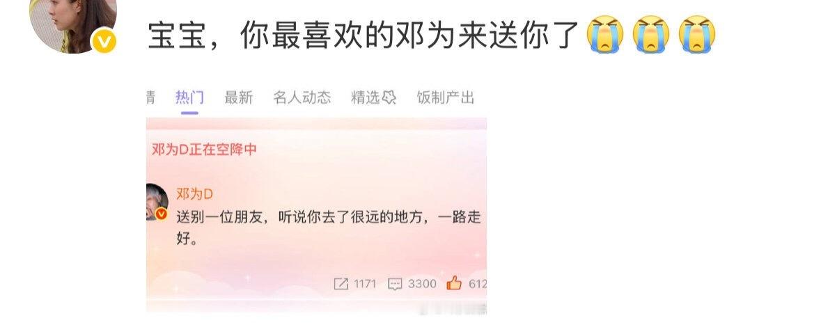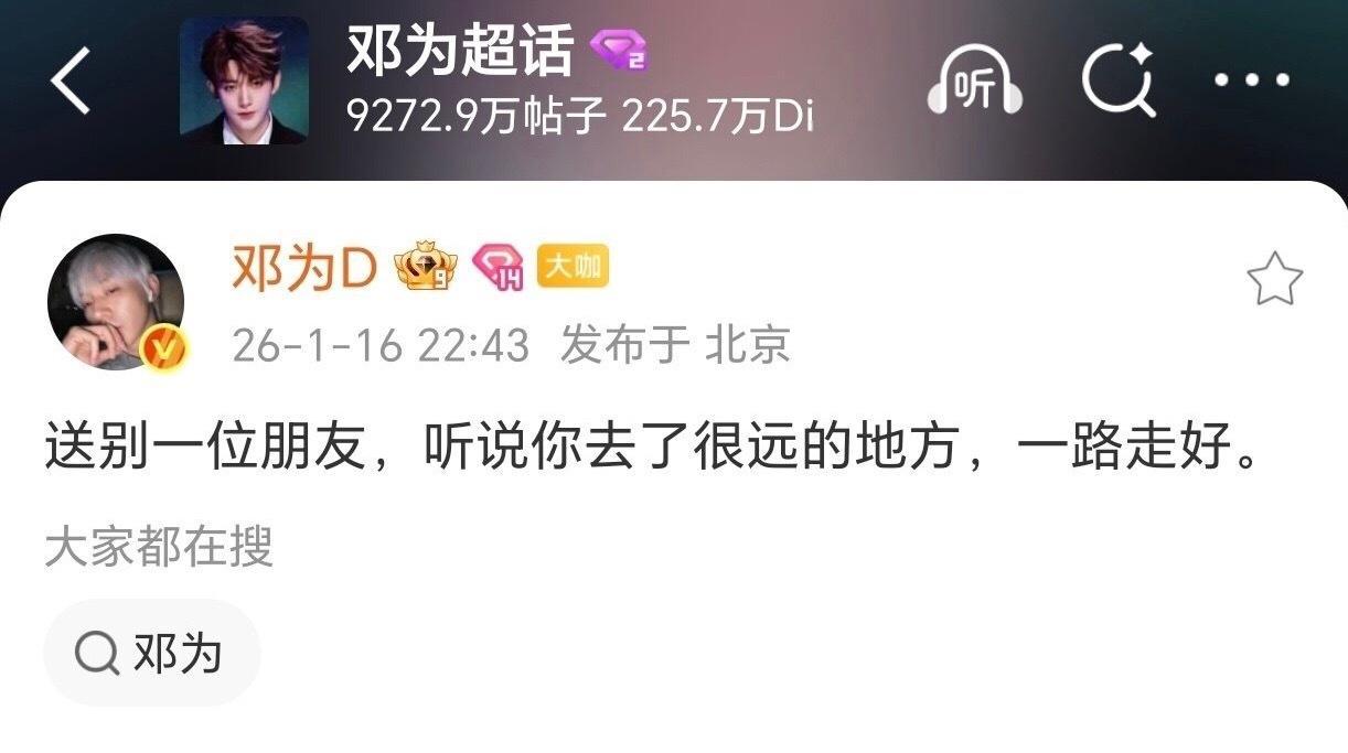 邓为深夜空降超话发博悼念因病去世的粉丝 天啦!追星人看不了这点,又感动又心疼!