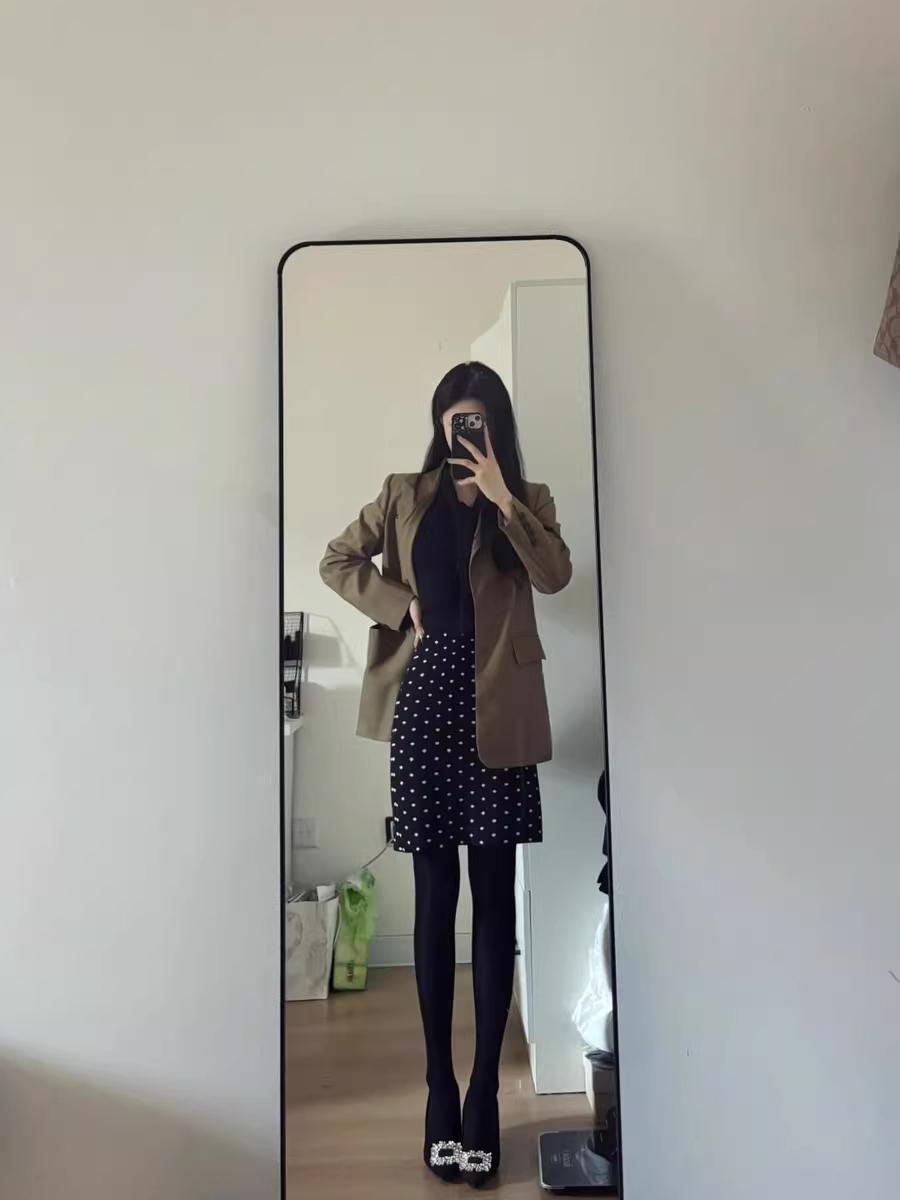 通勤职业装,加上厚黑加绒打底裤。这个冬天再也不冷了!职场人秋冬穿搭 黑打底穿搭