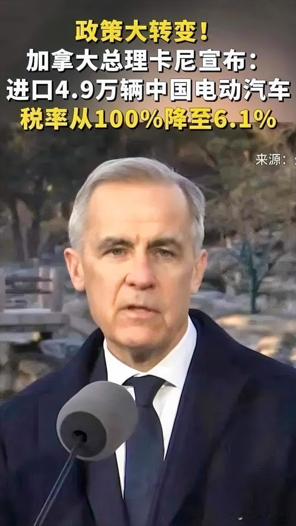 2026年1月,加拿大总理卡尼访华期间宣布,将允许每年最多4.9万辆中国电动汽车进入加拿大市场,配额内车辆适用6.1%的最惠国关税税率,不再征收此前高达100%的附加税,且配额数量将按比例逐年增长。这一政策调整恢复至贸易摩擦前水平,为中国电动汽车开拓北美市场提供了新机遇,也将进一步推动中加经贸合作。