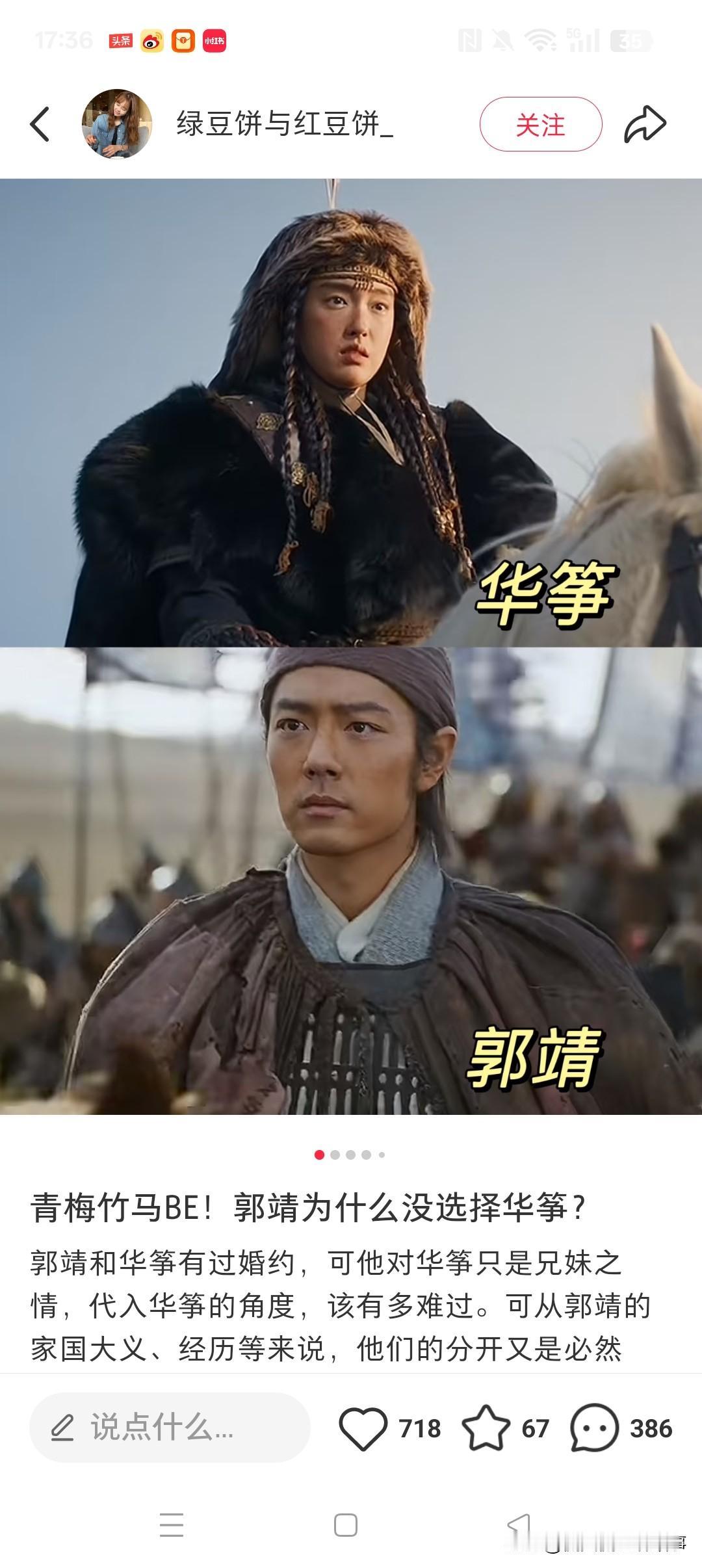 郭靖为何不选华筝?金刀驸马的头衔,从来都是烫手山芋 总有人说郭靖娶了华筝便是风光的金刀驸马,却没人提这头衔背后的万般尴尬与致命危机,他不选华筝,从来都不是变心,而是从根上就走不通的路。郭靖本是宋国人,自幼被母亲李萍教得忠君爱国,而成吉思汗的野心从不止于灭金,南下攻宋是迟早的事,届时他夹在蒙古的荣宠与母国的存亡之间,又该如何自处?一边是生养自己的大宋,一边是效命的蒙古,这份两难,本就是死局。 更何况,蒙古从不会真正信任一个宋国驸马,非我族类其心必异的成见刻在骨子里,郭靖只会被排挤、被防备,稍有不慎便可能性命不保。蒙古内部本就纷争不断,成吉思汗的儿子们尚且窝里斗,受宠的华筝都曾险些被当作筹码嫁给都史,一个有着宋国血统的驸马,又能在蒙古拥有多少真正的地位?到头来最好的结果不过是鸟尽弓藏,稍差便是兔死狗烹。 更别提两人之间还隔着李萍的一条命,这份隔阂本就无法逾越。郭靖从未真正喜欢过华筝,何来辜负一说?反倒是华筝执念太深,将一腔深情错付在了本就同路殊途的人身上。与其在蒙古的猜忌与家国的矛盾中落得身败名裂,不如为保卫大宋而死,于郭靖而言,这才是本心所向的归途。 风光的金刀驸马,实则是步步惊心的绝路,你觉得郭靖如果娶了华筝,最终会落得怎样的结局?
