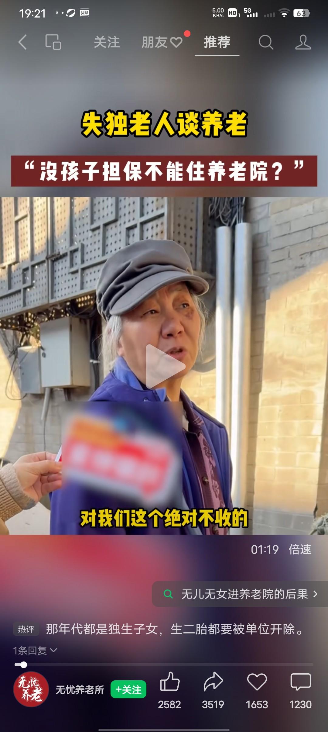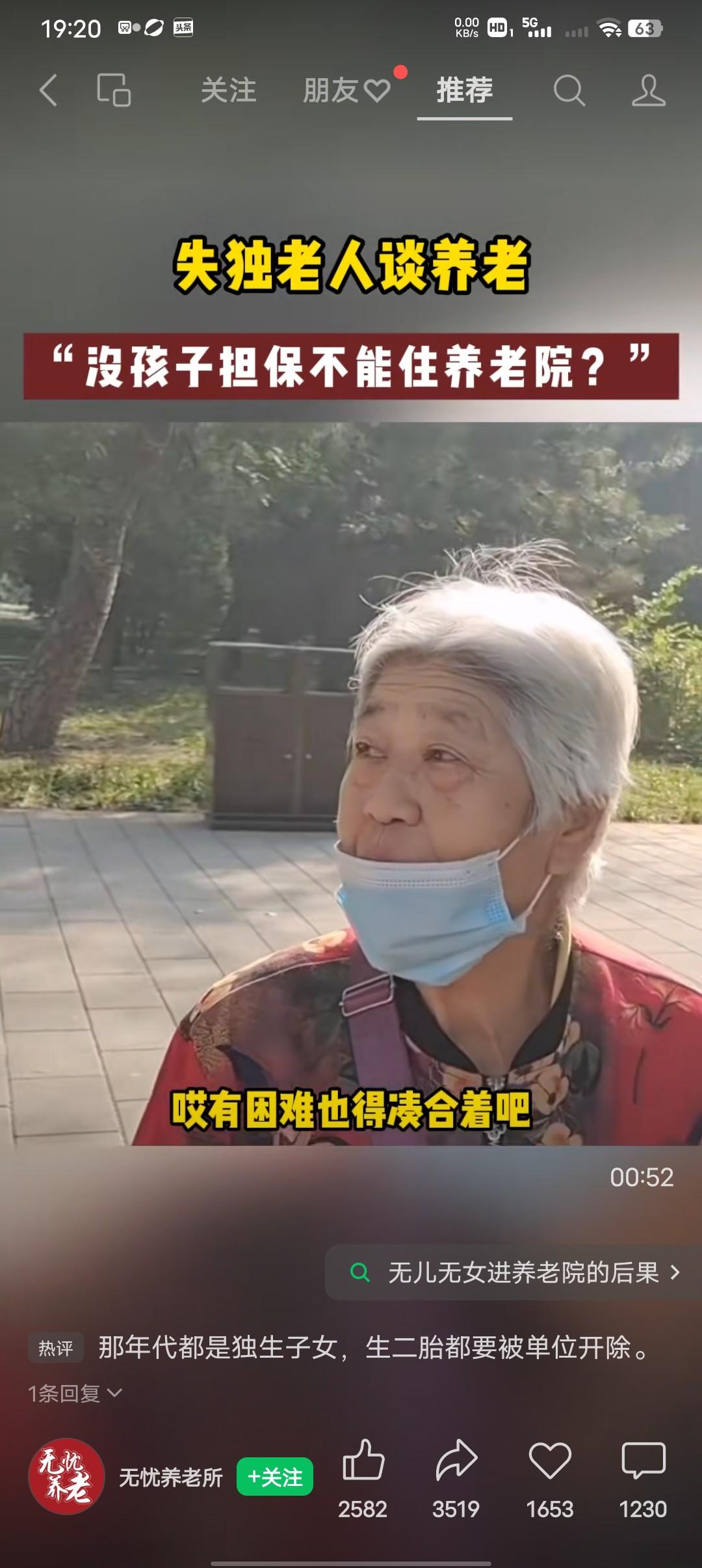 失独老人谈养老! 普通养老院像我们这种失独的这种情况他们不收的,没有孩子担保他不