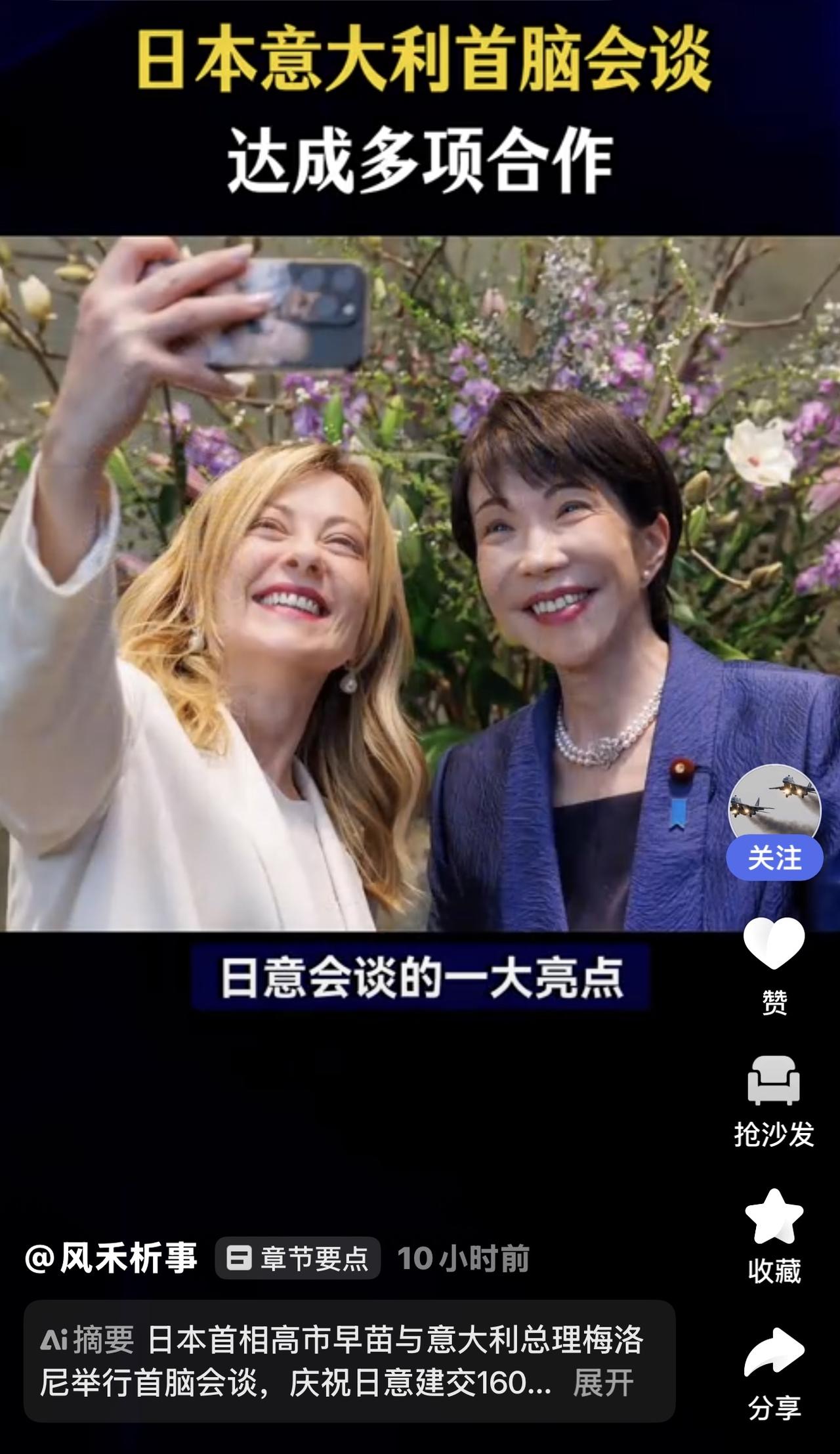 日本与意大利宣布将两国伙伴关系提升至更高水平 双方将在以下三个重点领域深化合作