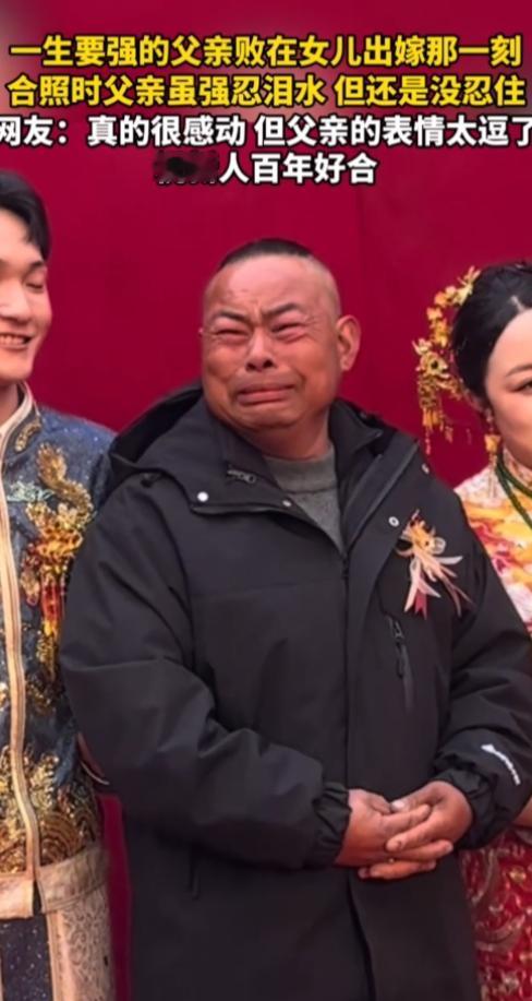 河北,一女儿出嫁,父亲一直强忍着,嘴巴开始抿,最后直接哭出表情包了。他忍不住,我也忍不住了! 挺感动的时刻,硬是给父亲给整成喜剧。我其实是很有教养的,但是我看了五遍笑了五遍!这表情包也没谁了! 父亲如山啊!这种味道只有父亲才能体会,百味杂陈……养的白白胖胖的,就让别人连盆端走了! 不管如何,还是要新人百年好合!