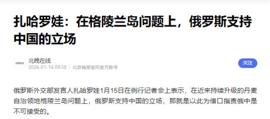 俄罗斯喊话中国 当地时间1月15日,俄罗斯外交部发言人扎哈罗娃公开表示:俄罗斯在格陵兰岛问题上的立场与中国一致,将俄中两国在格陵兰岛附近展开依法活动,化作为导致该岛紧张局势升级的借口,不可接受。   随后,她还补充指出:俄罗斯正在密切关注围绕格陵兰岛的局势,主张通过谈判解决分歧。   扎哈罗娃这话一出口,明眼人都能看出来,矛头根本不是指向格陵兰岛本身,而是对着那些在背后搅动局势的势力,尤其是一门心思要掌控格陵兰岛的美国。   大家可能没注意,最近这段时间格陵兰岛的风波就没停过,核心原因就是特朗普政府打了它的主意,张口闭口说“无论如何都要得到”这片土地,甚至不避讳提动用军事或经济胁迫的手段。这种把别国领土当商品的说法,别说格陵兰岛人受不了,连它的宗主国丹麦都坐不住,直接跟美国闹了外交僵局。   扎哈罗娃特意强调俄中立场一致,其实是点透了一个关键问题:俄中两国在格陵兰岛附近的所有活动,全都是按国际法来的,压根没越界。现在有人想把局势紧张的锅甩给俄中,这种说法纯属无稽之谈,根本站不住脚。毕竟稍微了解情况的人都知道,真正让格陵兰岛局势升温的,是美国的霸权野心,还有部分北约国家跟着起哄要在当地强化军事存在。   特朗普打格陵兰岛的主意不是一天两天了,他觉得这片世界第一大岛地理位置特殊,连接着北极和大西洋,岛上的稀土、石墨这些资源又是芯片制造和能源转型必需的,拿到手就等于攥住了关键战略筹码。美国白宫甚至明说,为了得到格陵兰岛,已经在讨论包括动用军队在内的一系列选项,这种赤裸裸的威胁,才是让整个地区不安的根源。   有意思的是,面对美国的步步紧逼,丹麦一边喊着要捍卫主权,一边邀请其他北约盟国在格陵兰岛搞常态化驻军轮换。可欧洲各国的反应特别微妙,法国只派15名军人,德国派13名侦察兵,英国更夸张,就派了1个人,芬兰和荷兰也只是各出一名联络官。这种象征性的增兵,明眼人都能看出来,就是想向美国表个态,实际根本起不到什么威慑作用。   扎哈罗娃说俄罗斯正密切关注局势,这话里藏着俄罗斯的立场:作为北极地区面积最大的国家,格陵兰岛周边的安全稳定跟俄罗斯的利益息息相关。俄罗斯驻丹麦大使之前就明确批评过,把北约拉入包括格陵兰岛在内的北极事务,本质上是对抗手法,只会削弱地区安全,不会有任何好处。   更关键的是扎哈罗娃提到的“主张通过谈判解决分歧”,这其实是给当前的僵局指了条明路。毕竟现在各方诉求很清晰:格陵兰岛人只想自己决定未来,明确表示“不想成为美国人”;丹麦希望保住对格陵兰岛的主权管辖;美国一门心思要掌控资源和战略要地;欧洲各国则想在中间找平衡,既不想得罪美国,又不想丢了自己在北极的利益。   俄中在格陵兰岛问题上的立场契合,核心就是都认同国际法的基本原则,都反对用霸权手段干涉别国内政。格陵兰岛虽然是丹麦的自治领地,但自身有高度的自治权,当地民众对这片土地的认同感极强,去年一份民调显示,85%的格陵兰民众都反对成为美国的一部分。俄中从来没想着干涉格陵兰岛的内部事务,只是在合法框架内开展合作,现在有人想把这当成局势紧张的借口,自然遭到两国共同反对。   现在的情况是,美国和丹麦的谈判陷入了僵局,丹麦外交大臣跟美国副总统、国务卿谈完后,直言双方存在“根本性分歧”。而格陵兰岛首府努克已经爆发了反美大游行,上千人走到美国领事馆抗议,就是想告诉美国,这片土地不是他们想拿就能拿的。   扎哈罗娃的表态,其实也是在提醒各方:搞对抗没有任何意义,只有坐下来谈判,尊重彼此的核心利益,才能真正解决问题。俄中会继续在合法框架内开展活动,同时也会密切关注局势变化,不会放任有人破坏地区的和平稳定。毕竟对所有国家来说,遵守国际法、尊重他国主权,才是维护自身利益的根本前提,靠威胁和施压得来的利益,从来都不会长久。