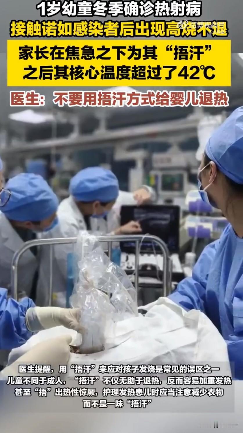 提到热射病,大家第一反应都是夏天的“高温杀手”,可最近1岁幼童冬季确诊热射病的话题让人大跌眼镜,北京一岁男童小明(化名)在冬天被送进ICU抢救,罪魁祸首居然是家长熟悉的“捂汗退烧”操作。 事情的起因其实很常见,小明之前接触过诺如病毒感染者,之后就开始呕吐、腹泻,还发起了高烧。家长看着孩子难受,急着让他快点退热,就用了老一辈传下来的“捂汗”法——在温暖的室内给孩子穿了厚厚的棉衣,身上还贴了暖宝宝,最后再盖上被子,想着捂出一身汗就能退烧。可谁也没料到,这看似“贴心”的操作,却差点酿成大祸。 捂了没多久,小明的状态不仅没好转,反而越来越差,开始意识不清,连哭都没力气了,呼吸也变得急促。家长这才慌了神,赶紧把孩子送进附近医院,一测核心体温直接飙到42℃以上,已经出现了血氧下降、心率减慢的危险情况,医生初步诊断是热射病,赶紧做了紧急处理后,又连夜把孩子转去了首都儿童医学中心的ICU。 刚转院时,小明的情况已经危重到让人揪心:重度昏迷,呼吸全靠呼吸机维持,心率飙到162次/分,还出现了低血容量性休克,肝肾功能和心肌都受到了损伤,背上和肚子上还有暖宝宝烫伤的红斑和破溃,瞳孔反射都快消失了。要知道,热射病可是致死率超高的危重症,尤其是儿童体温调节中枢还没发育好,一旦发病,多器官就像被“蒸煮”一样,病死率能达到60%以上。 医院的重症团队立刻启动了应急预案,用亚低温技术帮孩子降温,还做了呼吸和循环支持,全力保护他的脏器功能。好在抢救及时,入院2小时,小明的体温就降到了正常范围,4小时后呼吸和循环也稳定了下来。可后续治疗并不顺利,第二天他又出现了抽搐,还并发了弥散性血管内凝血和横纹肌溶解,医生又联合了神经内科、中医科等多个科室会诊,调整治疗方案。 经过十多天的精心救治,小明的病情终于被控制住,后续还进行了康复训练,出院时大部分神经功能都恢复了,日常生活也能正常进行。很多人疑惑,冬天怎么会得热射病?其实热射病的关键是“产热大于散热”,冬天如果过度保暖、室内不通风,就会形成高温高湿的“小环境”,尤其是婴幼儿、老人和慢性病患者,体温调节能力弱,特别容易中招。 像泡温泉、蒸桑拿时间太长,或者运动时穿太多不透气的衣服,都可能诱发冬季热射病。医生也提醒,孩子发烧时千万别“捂汗”,正确做法是保持室内通风,给孩子穿宽松透气的衣服,体温超过38.5℃及时用退烧药,要是出现持续高烧、精神差的情况,一定要赶紧送医,可别因为错误的护理方式耽误了病情。 这场跨越季节的生命守护战,虽然有惊无险,但也给所有家长提了个醒:育儿不能凭老经验,科学护理才是关键,看似常见的“捂汗”,可能藏着致命的风险。 来源:大河报