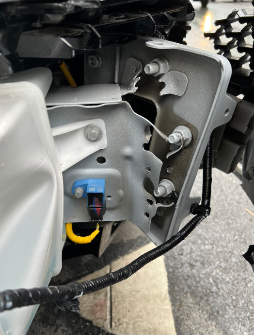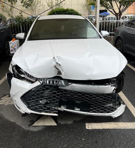 防撞梁都快断了,气囊没弹出来 前两天车子撞了护栏,前面都撞成这样了,安全气囊没有弹出来。 送到4s店后请厂家检测了大概四五天,最后就说没有触碰到图三蓝点的感应器。 请教一下大家这个正常吗?