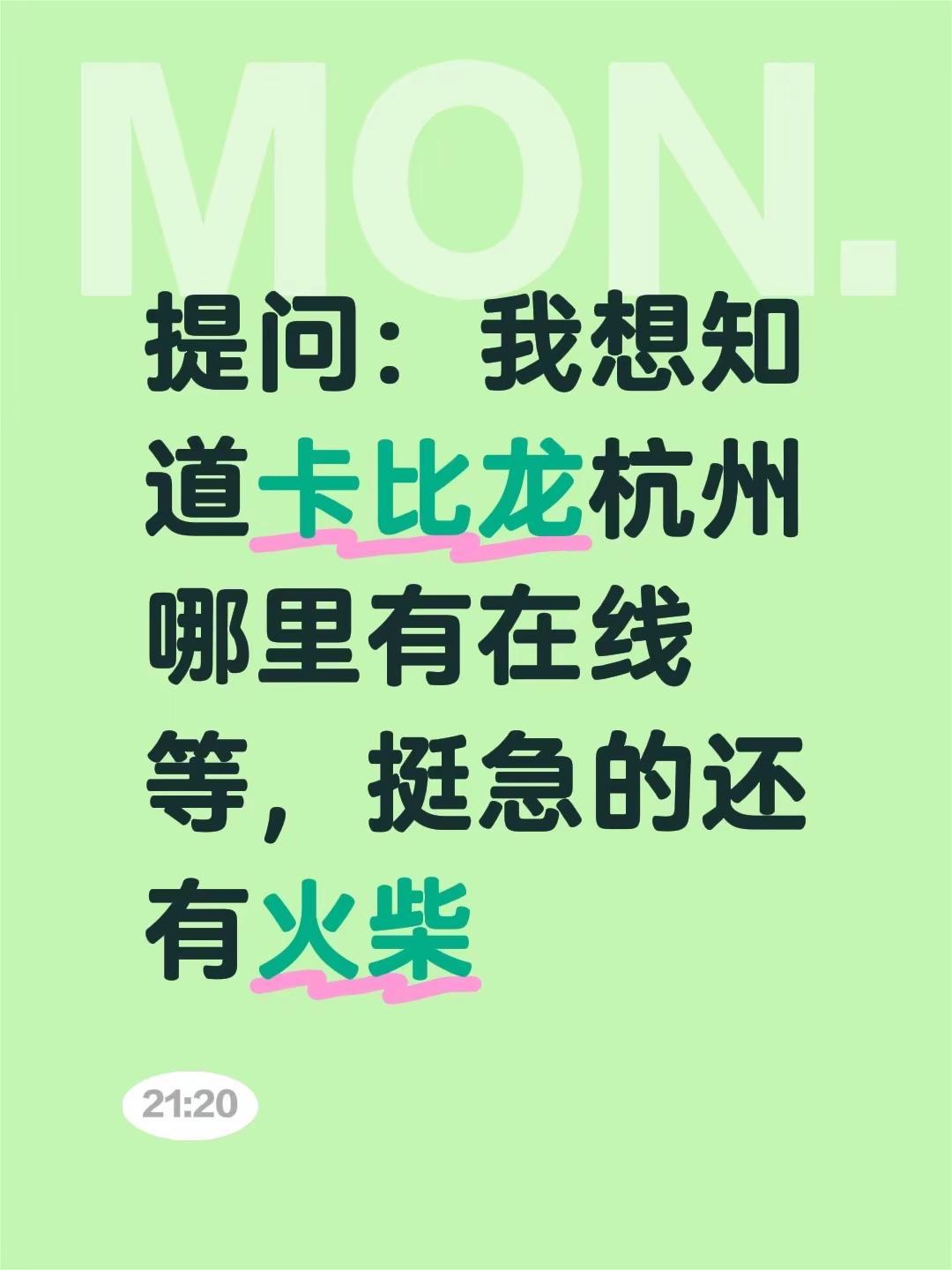 重点一划。提问:我想知道卡比龙杭州哪里有在线等,挺急的还有火柴