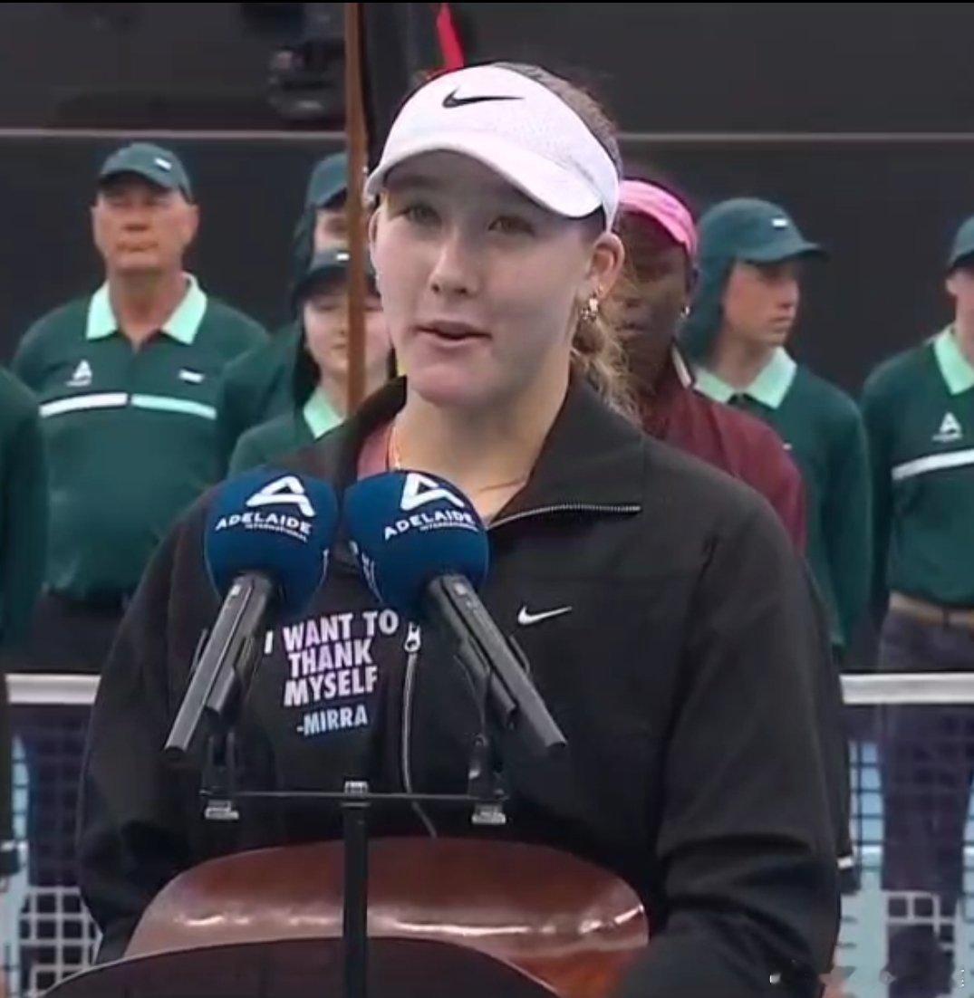安德列娃衣服上这句话亮了“I want to thank myself”(我想感谢我自己)最近几年阿德莱德冠军随后澳网战绩:2022 巴蒂🏆2023 萨巴伦卡🏆2024 奥斯塔彭科(第三轮)2025 凯斯🏆2026 安德列娃?安德列娃阿德莱德赛夺冠安德列娃终结10个月冠军荒这很澳网
