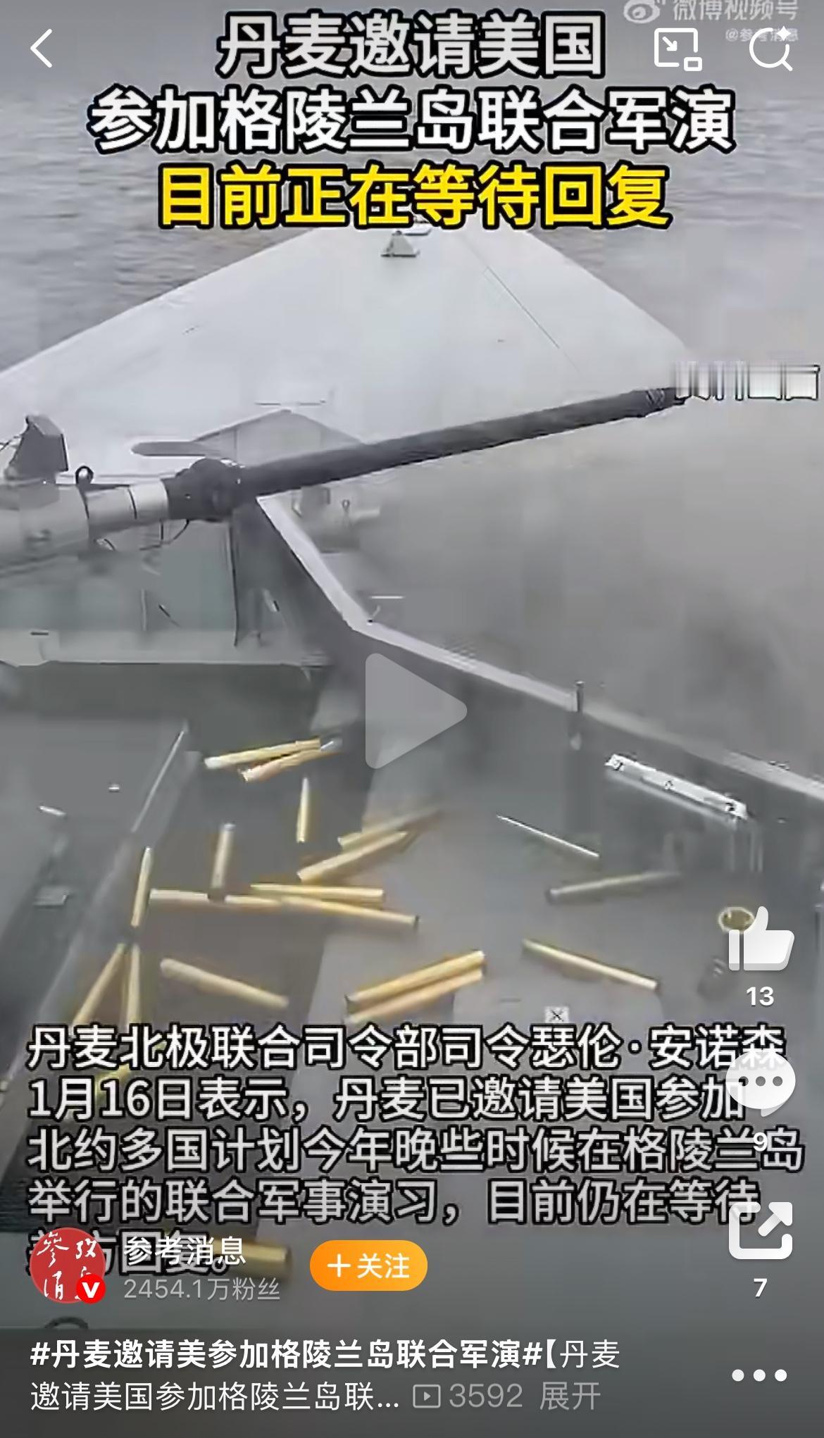 实在令人费解!丹麦竟邀请美国参与格陵兰岛联合军演! 1月16日,哥本哈根传来消息:丹麦北极联合司令部司令瑟伦·安诺森称,丹麦已邀请美国参加北约多国计划“今年晚些时候”在格陵兰岛举办的联合军事演习,目前正等候美方回应。 据丹麦媒体报道,丹麦当天与包括美国在内的多个北约成员国召开会议,还邀请这些伙伴参与计划于今年在格陵兰岛举行的军事演习。不过,并未明确是否是近期的“北极耐力”军事演习。 要知道,丹麦真正的威胁来之美国,且美国妄图吞并格陵兰岛。在这样的情形下,丹麦组织军演应该针对美国入侵才对,怎么还邀请美国参加军事演习,实在让人摸不着头脑。丹麦为了守护格陵兰岛,防止美国入侵,邀请美国参加军演来应对来自美国的威胁,这听起来简直不可思议。那这演习的真正目的究竟是什么?意义又何在呢? 只能说,这些西方国家,一见到美国就怂得不行,要是对美国有半点冒犯都感觉愧对美国,这奴性真强。如果是这样子,那还不如直接把岛送给美国算了,反正早晚都得让美国给拿走,不如来个顺水人情拱手相让,说不定特朗普还给发点生活补助,做个二等美国人可能也不错!
