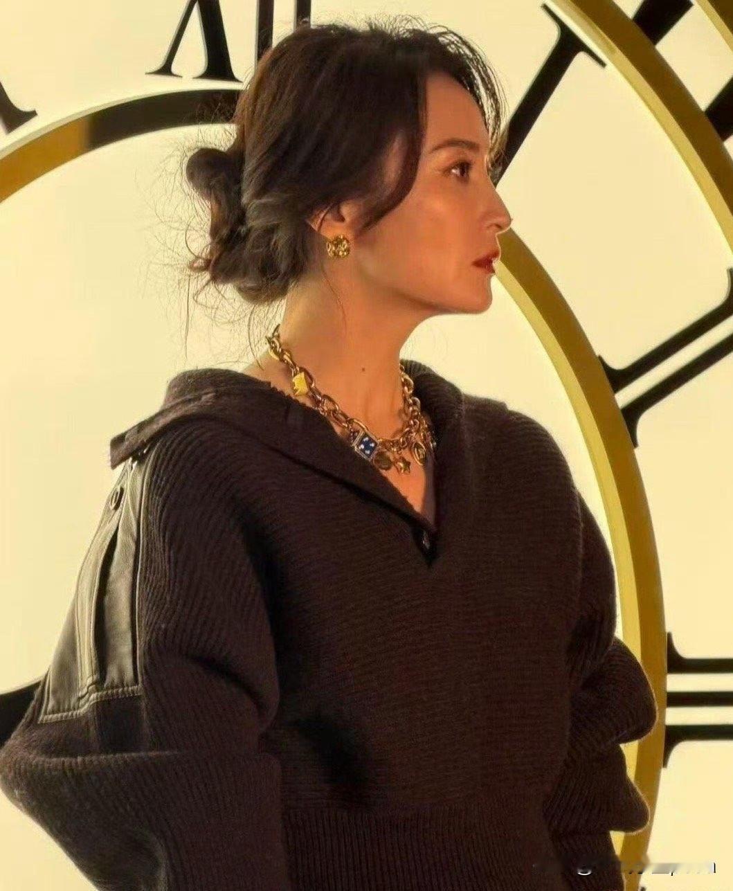 蒋勤勤这生图真的骨相太优越了,五官立体又耐看。 这套衣服也好看,既保暖又的得体,连帽针织衫配红黑格纹裙,优雅里带点学院气息,老花高跟鞋和金色首饰一点缀,贵气立刻来了整个人都在发光啊! 姐姐真是美得轻松又自信,这才是岁月馈赠的质感啊✨