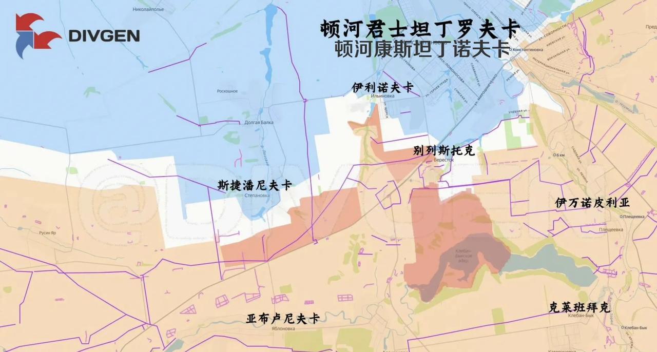 俄军南部集群把顿河康斯坦丁诺夫卡南边的外围区域基本啃没了,并且在侧翼攻击伊利诺夫