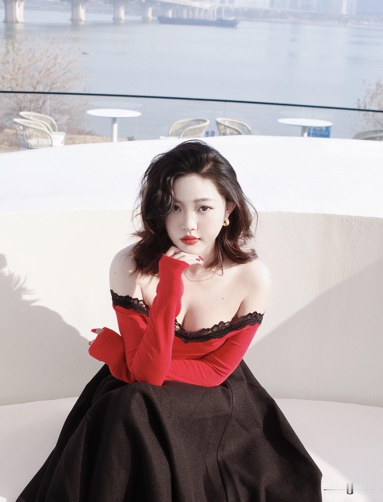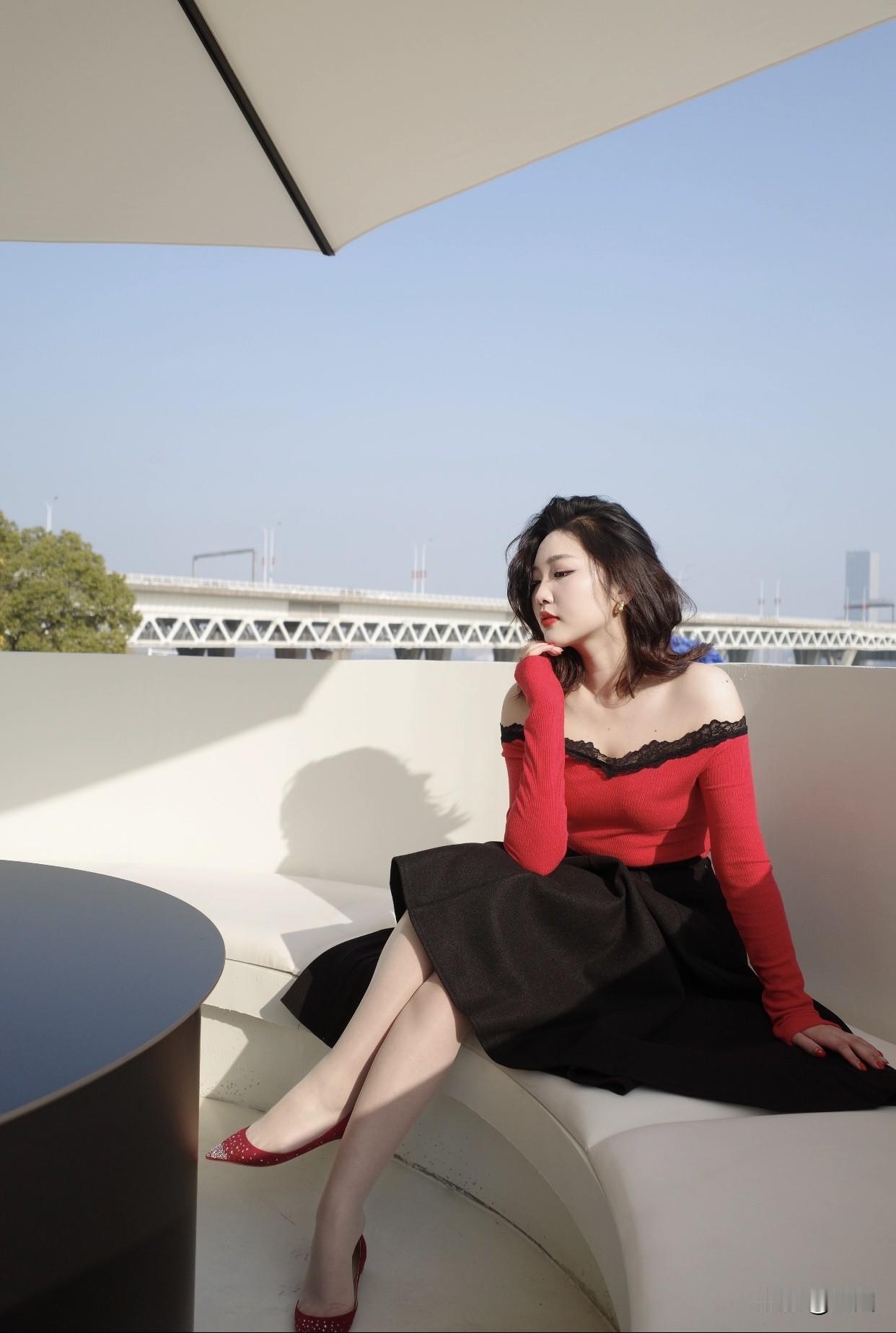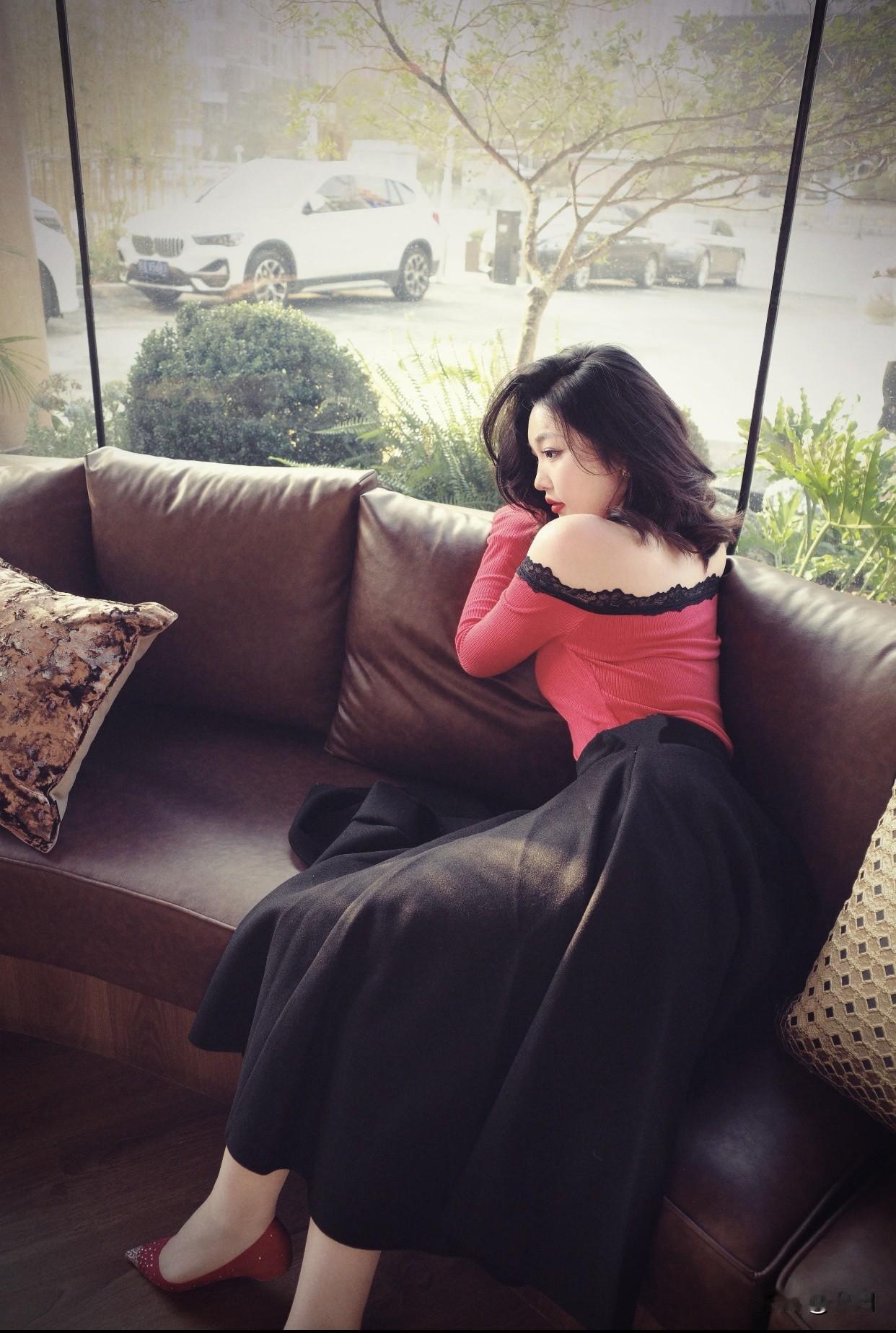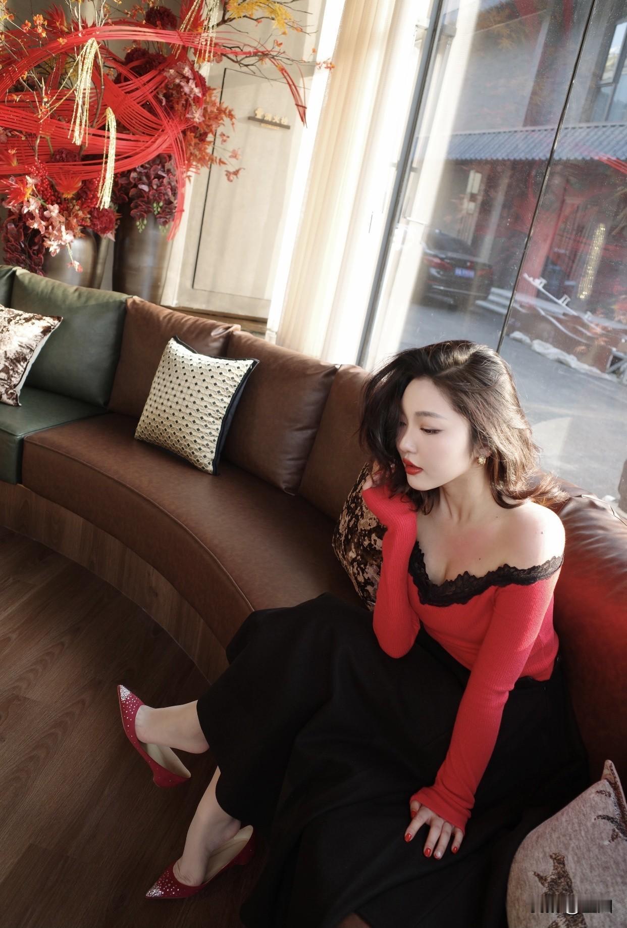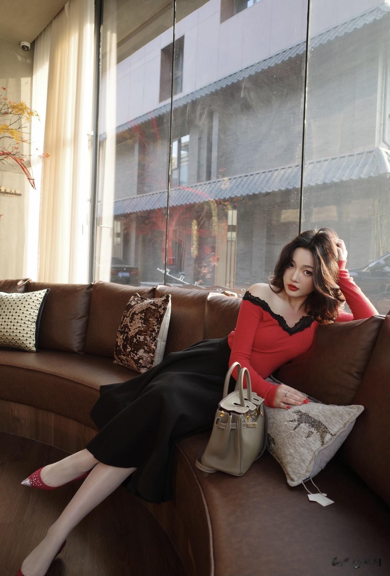 女人如何穿出含蓄的性感?窗边慵懒时光,红衣少女倚靠沙发,静享宁静午后。