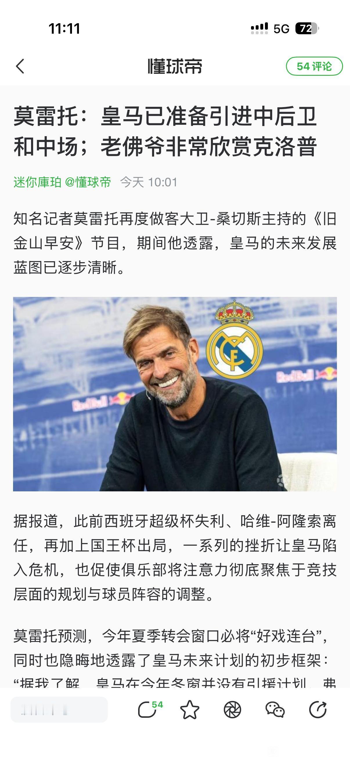皇马和克洛普的传闻越来越多,这件事恐怕成真。 新闻说弗洛伦蒂诺欣赏克洛普,这就是业界认可。 皇马教练也是世界上最高的挑战,克洛普能找的最好工作了!!改变想法去吧。[可怜]