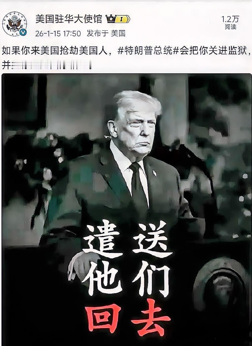 牢A安全回国的第二天,美国驻华大使馆发这句话是什么意思?并且还是用的中文发的!他们是要把谁关进监狱,又是要把谁遣送回去?发这句话面向的受众不要太明显了吧!怪不得很多大V评论牢A回国,都说如果是自己遇到这样的情况,跑的比他还要快。其实让那些高达达害怕的并不是关进监狱,也不是遣送回国,而是莫名其妙的肉体消失术。一个老流氓,领着一群疯子,到处惹事生非,反口说是别人的过错。只要被他看上的东西,能买就买,买不来就抢,抢不过来就毁掉。 这话真不是瞎掰,美国驻华大使馆这波操作简直把“此地无银三百两”玩到极致。明知道牢A回国全网热议,偏要第二天跳出来发中文声明,字里行间的威胁味都快溢出来了,生怕有人看不懂他们的“警告”。可到底要警告谁?是海外华人华侨,还是国内民众?这种含糊其辞的表态,说白了就是想制造恐慌,让大家觉得得罪他们就没好果子吃。 大V们说“换我跑更快”,背后全是无奈。不是胆小,是见过太多前车之鉴。海外被美国无端打压的企业和个人,有的资产被冻结,有的失去自由,还有的被安上莫须有罪名。更让人脊背发凉的是“肉体消失术”,这可不是危言耸听。多少异见人士、商业对手前一天还好好的,第二天就没了音讯,官方解释要么漏洞A安全回国的第二天,美国驻华大使馆发这句话是什么意思?并且还是用的中文发的!他们是要把谁关进监狱,又是要把谁遣送回去?发这句话面向的受众不要太明显了吧!怪不得很多大V评论牢A回国,都说如果是自己遇到这样的情况,跑的比他还要快。其实让那些高达达害怕的并不是关进监狱,也不是遣送回国,而是莫名其妙的肉体消失术。一个老流氓,领着一群疯子,到处惹事生非,反口说是别人的过错。只要被他看上的东西,能买就买,买不来就抢,抢不过来就毁掉。 这话真不是瞎掰,美国驻华大使馆这波操作简直把“此地无银三百两”玩到极致。明知道牢A回国全网热议,偏要第二天跳出来发中文声明,字里行间的威胁味都快溢出来了,生怕有人看不懂他们的“警告”。可到底要警告谁?是海外华人华侨,还是国内民众?这种含糊其辞的表态,说白了就是想制造恐慌,让大家觉得得罪他们就没好果子吃。 大V们说“换我跑更快”,背后全是无奈。不是胆小,是见过太多前车之鉴。海外被美国无端打压的企业和个人,有的资产被冻结,有的失去自由,还有的被安上莫须有罪名。更让人脊背发凉的是“肉体消失术”,这可不是危言耸听。多少异见人士、商业对手前一天还好好的,第二天就没了音讯,官方解释要么漏洞百出,要么闭口不谈。这种未知的恐惧,比蹲监狱、被遣返可怕多了——监狱有明确去处,遣返只是离开熟悉的地方,“消失”却意味着彻底没踪迹,连说理的地方都没有。 再看这“老流氓”的行事风格,这些年在国际上真是暴露无遗。看上中东石油,就找借口发动战争,打着“反恐”旗号抢资源,把人家国家搅得民不聊生,自己拍拍屁股走人。看到别的国家科技崛起,就耍无赖搞技术封锁,污蔑“窃取知识产权”,把华为这样的企业往死里压。就连盟友也没逃过,法国潜艇订单说抢就抢,欧洲能源危机不管不顾,只要能捞好处,盟友情谊、国际规则全是摆设。 最让人不齿的是,他们总把自己包装成“正义使者”,把过错全推给别人。发动战争说“维护和平”,搞贸易战说“公平竞争”,打压异己说“捍卫民主”,这套说辞翻来覆去用,明眼人都知道是赤裸裸的霸权主义。就像街头无赖抢了东西,还倒打一耙说别人先惹他,厚颜无耻到了极点。 被他们盯上的目标从来没选择余地。能低价收购的企业,就威逼利诱逼着签字;收购不成,就用行政手段打压,断供、制裁、罚款无所不用其极;遇到硬骨头抢不过也买不来,就干脆毁掉。那些被美国搞垮的企业,不是破产倒闭就是被拆分收购,下场一个比一个惨,这哪里是国家行径,分明是强盗明火执仗。 美国这么做无非是怕霸主地位旁落,可霸权不是靠抢和打压得来的,得靠实力、信誉和共赢。现在的美国没了当年格局,眼里只有利益,为了利益不择手段,到处打压异己、制造冲突,只会让更多国家看清真面目,站到他们对立面。 大V们说“跑的比牢A还快”,是看透了霸权的可怕。个人在绝对霸权面前太渺小,与其硬碰硬当“靶子”,不如先自保,这不是害怕,是无奈。咱们普通人虽未必遇到这种事,但美国的霸权行径离我们不远,物价上涨、科技发展、国际局势都可能受其影响。我们能做的,就是看清真面目,不被花言巧语蒙骗,支持反抗霸权的国家和企业,团结起来才能遏制“老流氓”行径。 各位读者你们怎么看?欢迎在评论区讨论。