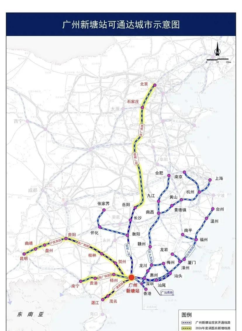 广州东部想要一个火车站枢纽,与其期待黄埔站的遥遥无期,还不如期待新塘站多通几个城市。现在,新塘站主要通向东部地区,北部、西部的车要不完全没有,要不班次特别少。我就指望回广西可以直接去新塘坐车,就不用跑遥远的南站了。我也希望新塘站多通几条地铁,科学城去新塘站还是太不方便了。