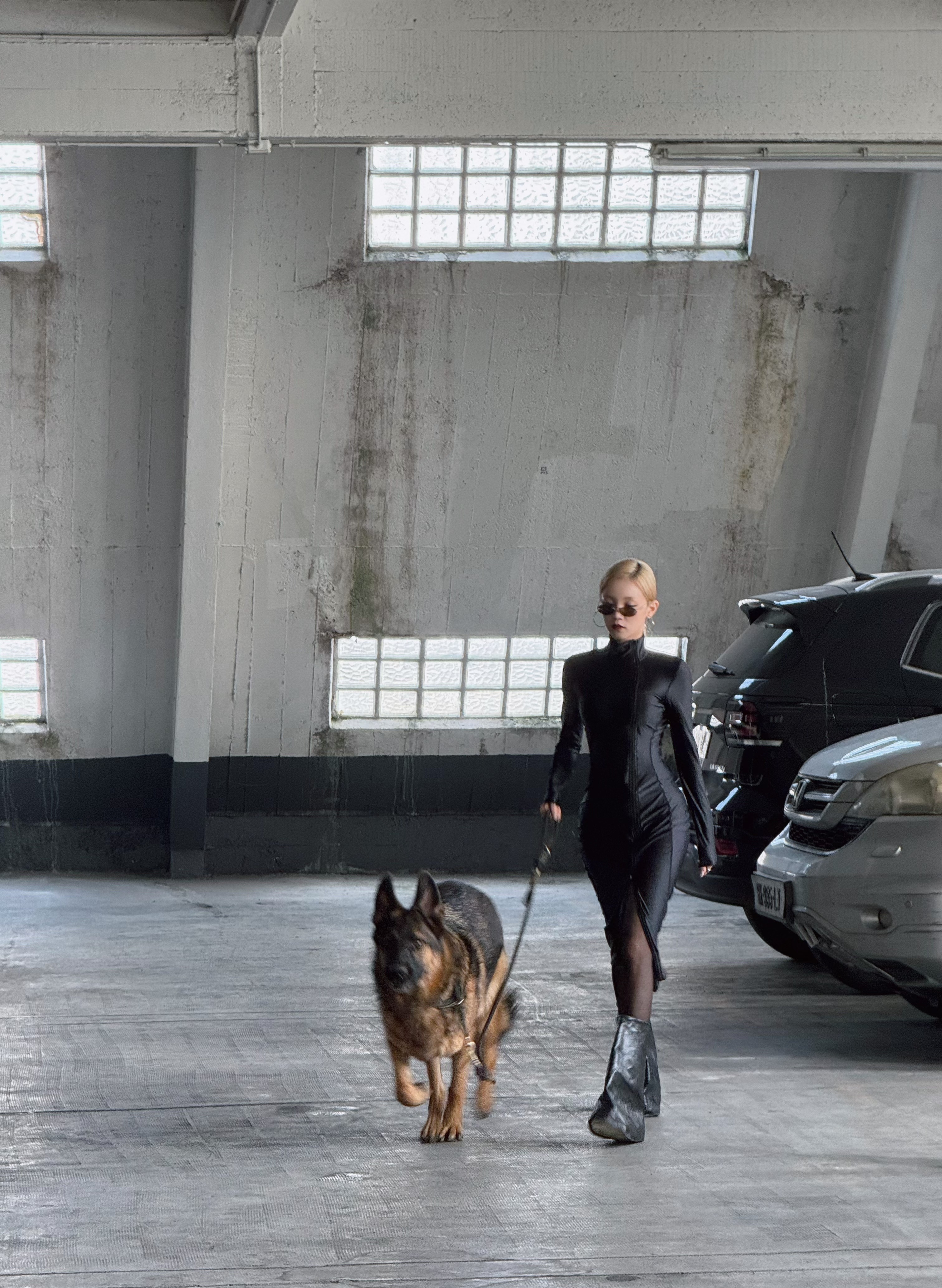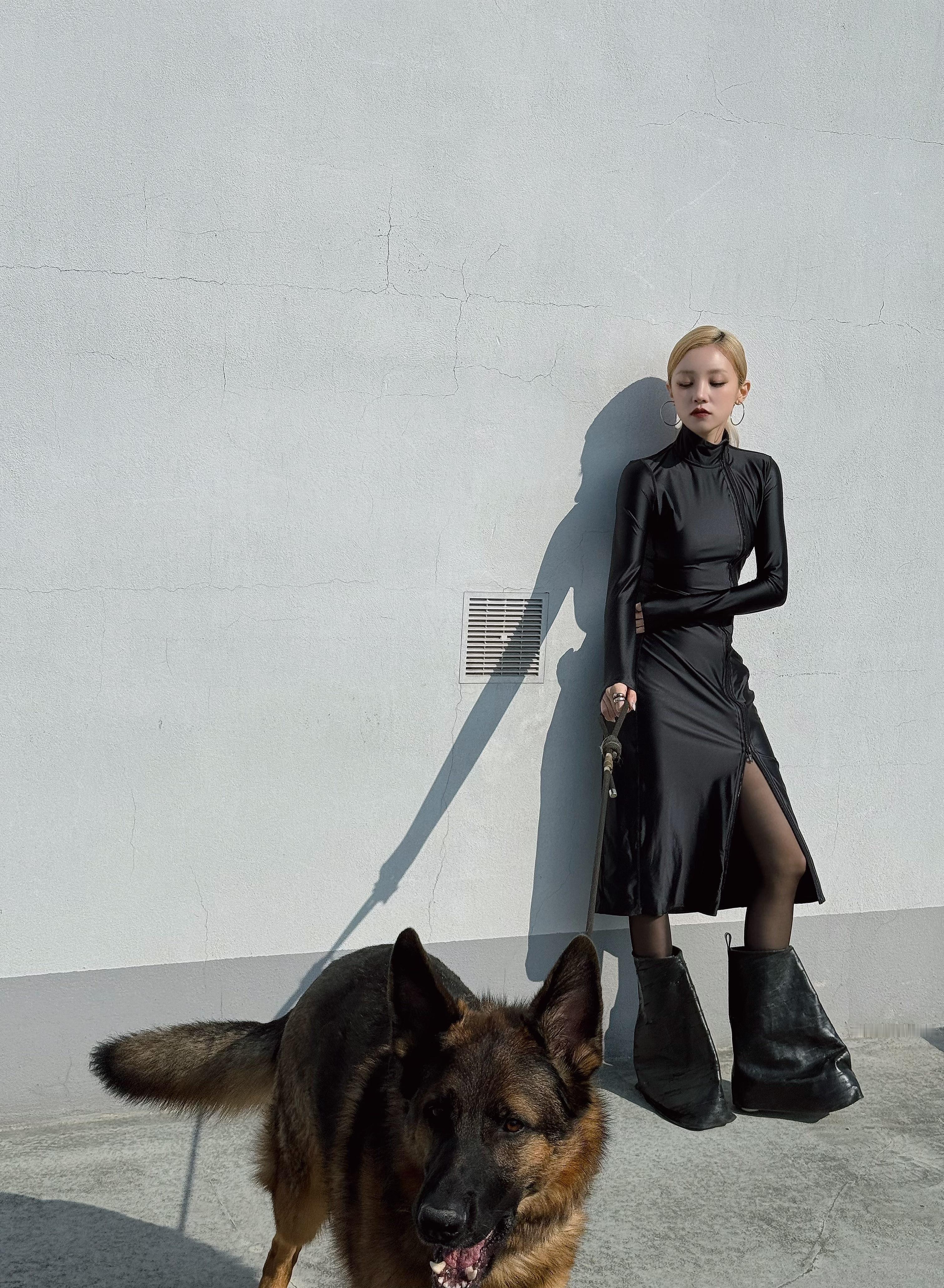 刘亦菲很少人拍这种包臀皮裙配一字带高跟的美照哎!她这种略微丰韵的高挑身材其实蛮适