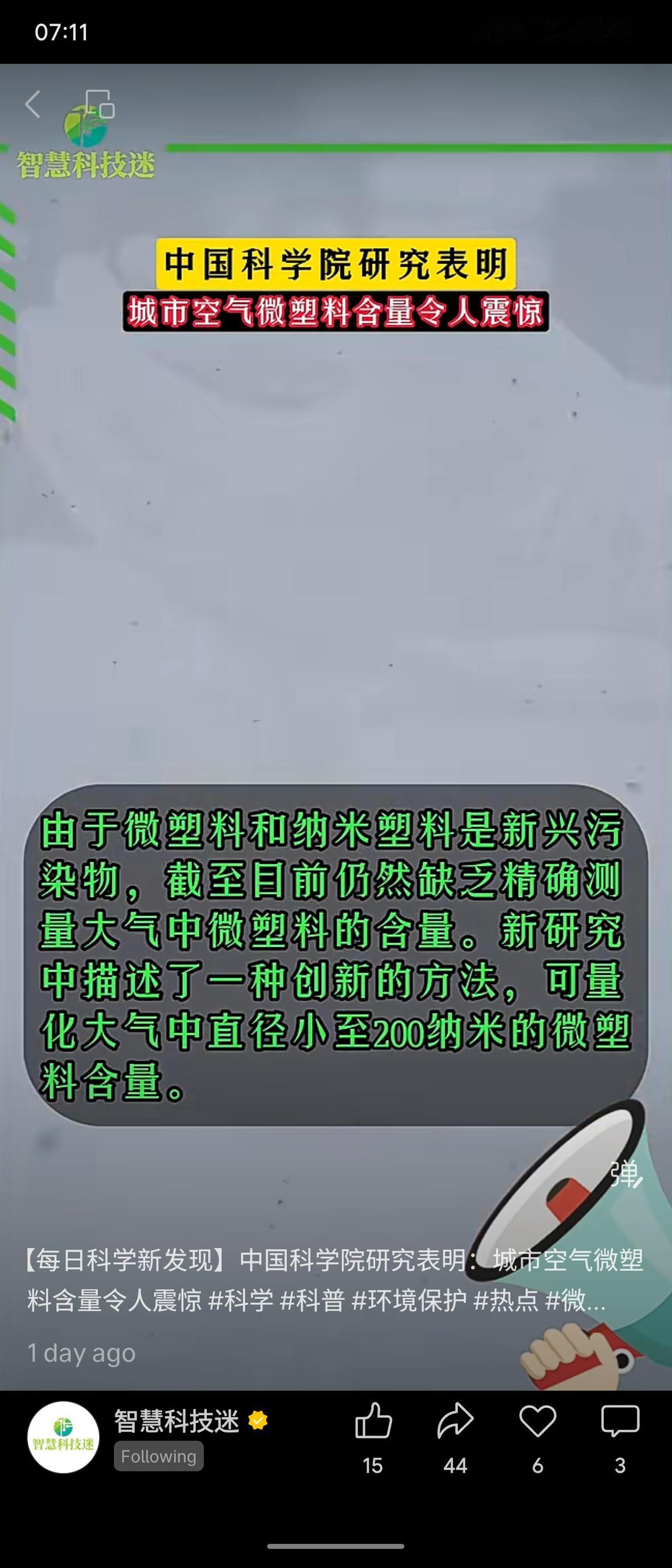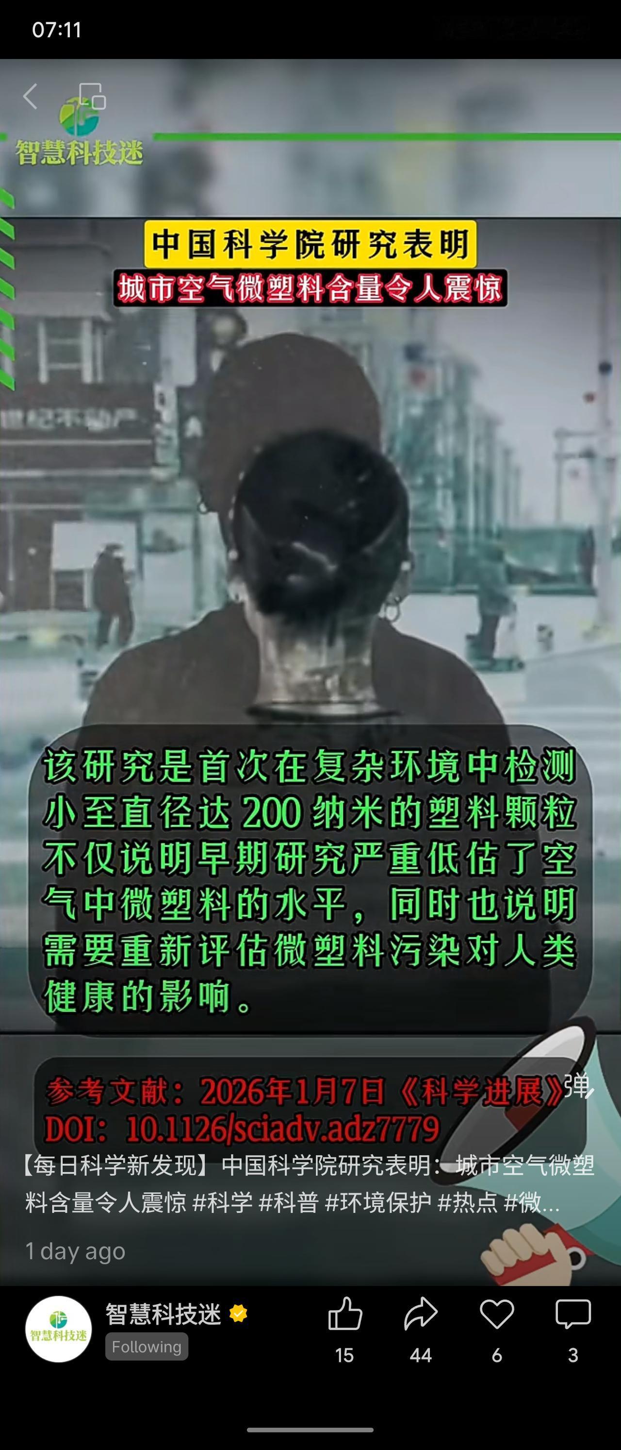 中国科学院最新研究表明,城市空气中微塑料污染程度远超此前认知。研究人员采用创新方法,首次实现对小至200纳米的塑料颗粒进行定量检测。在两个省会城市的样本中,测得每立方米微塑料颗粒高达18万个,纳米塑料达5万个,浓度比以往数据高出2至6个数量级。该成果发表于《科学进展》,指出早期研究严重低估了空气微塑料水平,其对人类健康的风险亟待重新评估。