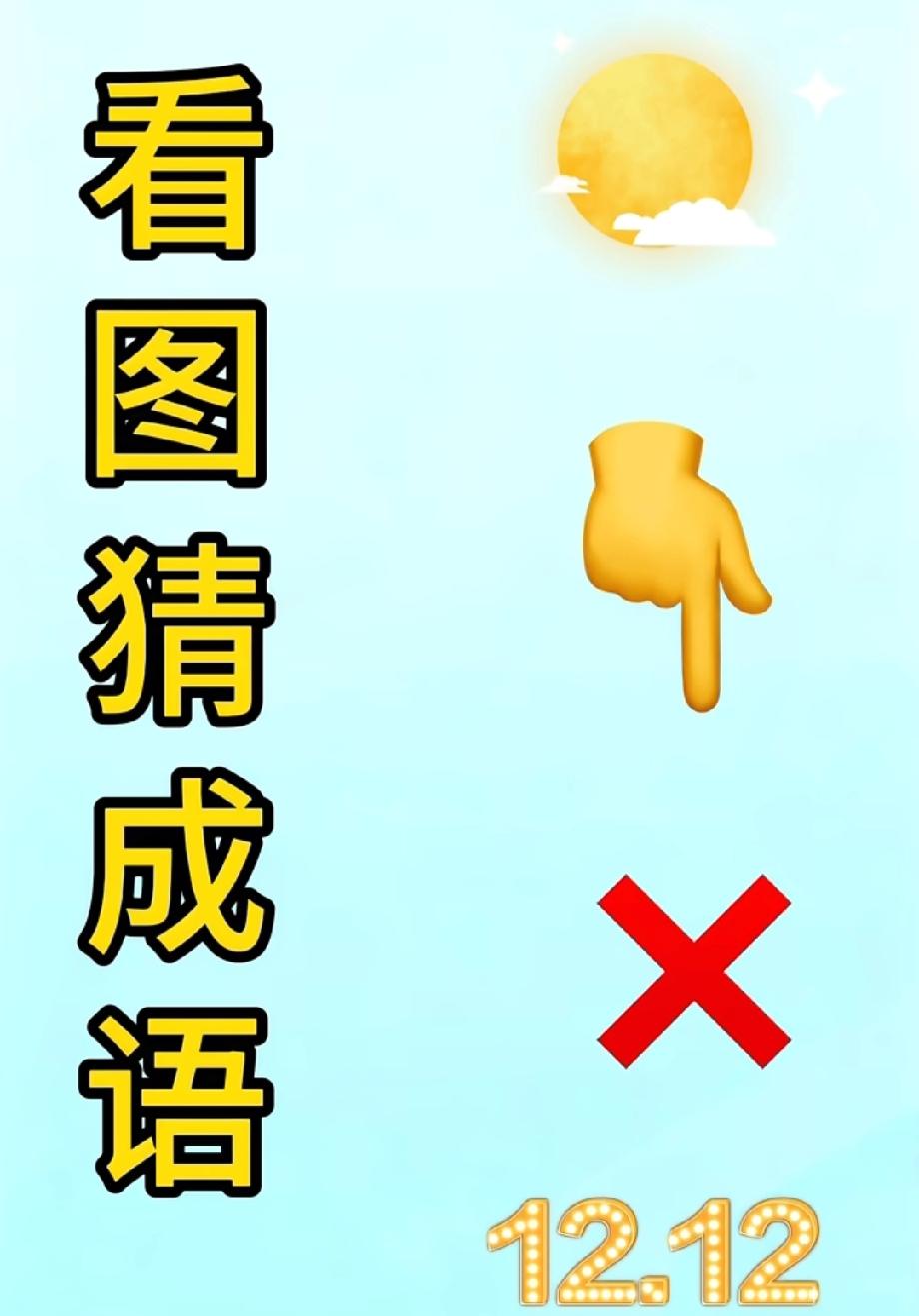 太阳、手指、叉号、双十二?这图的成语我想破头都没猜出来,你能行吗?