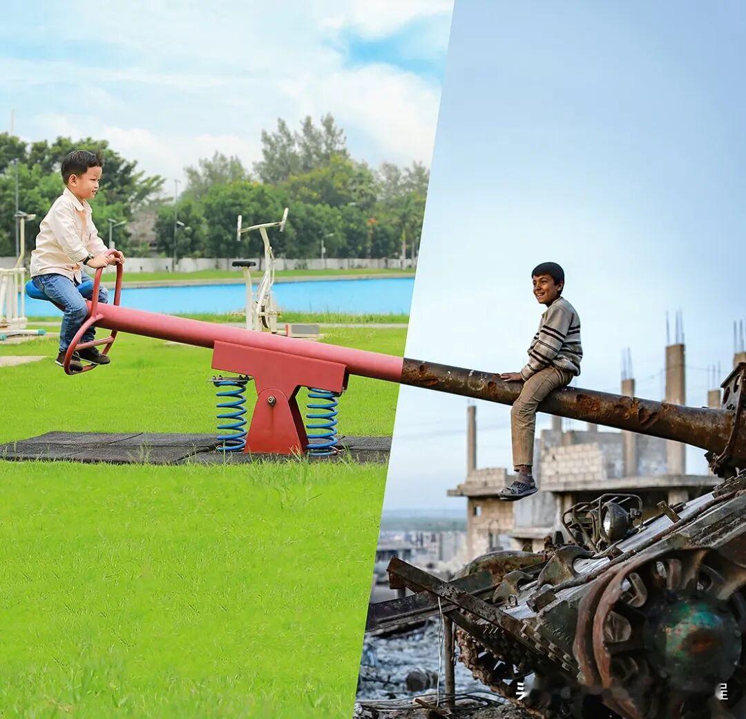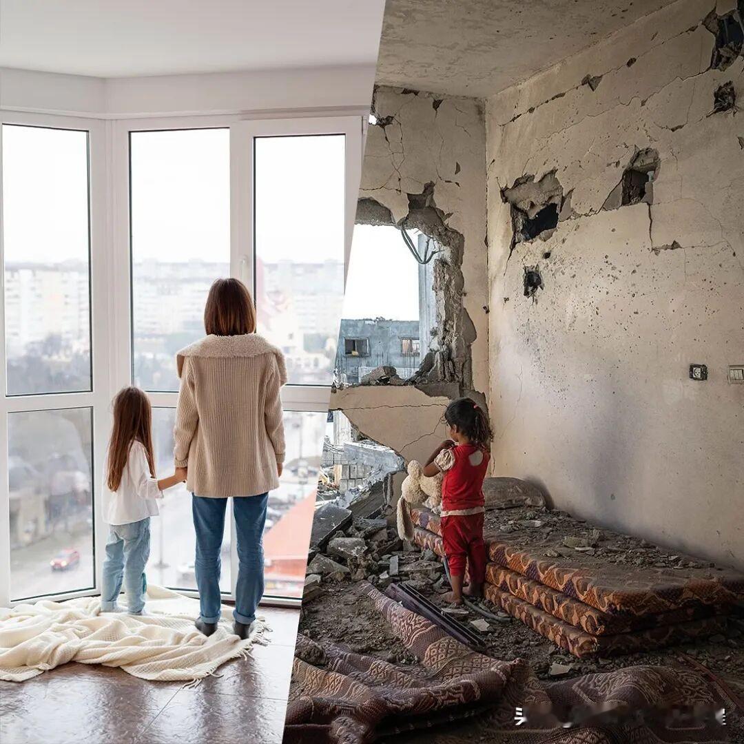 一半天堂一半地狱‼️这组照片看哭了 这组拼贴摄影图来自于土耳其数字摄影师ugurgallen,一边,是我们习以为常的安稳生活;另一边,是战争、贫穷、流离失所的场景。 请珍惜我们来之不易的幸福