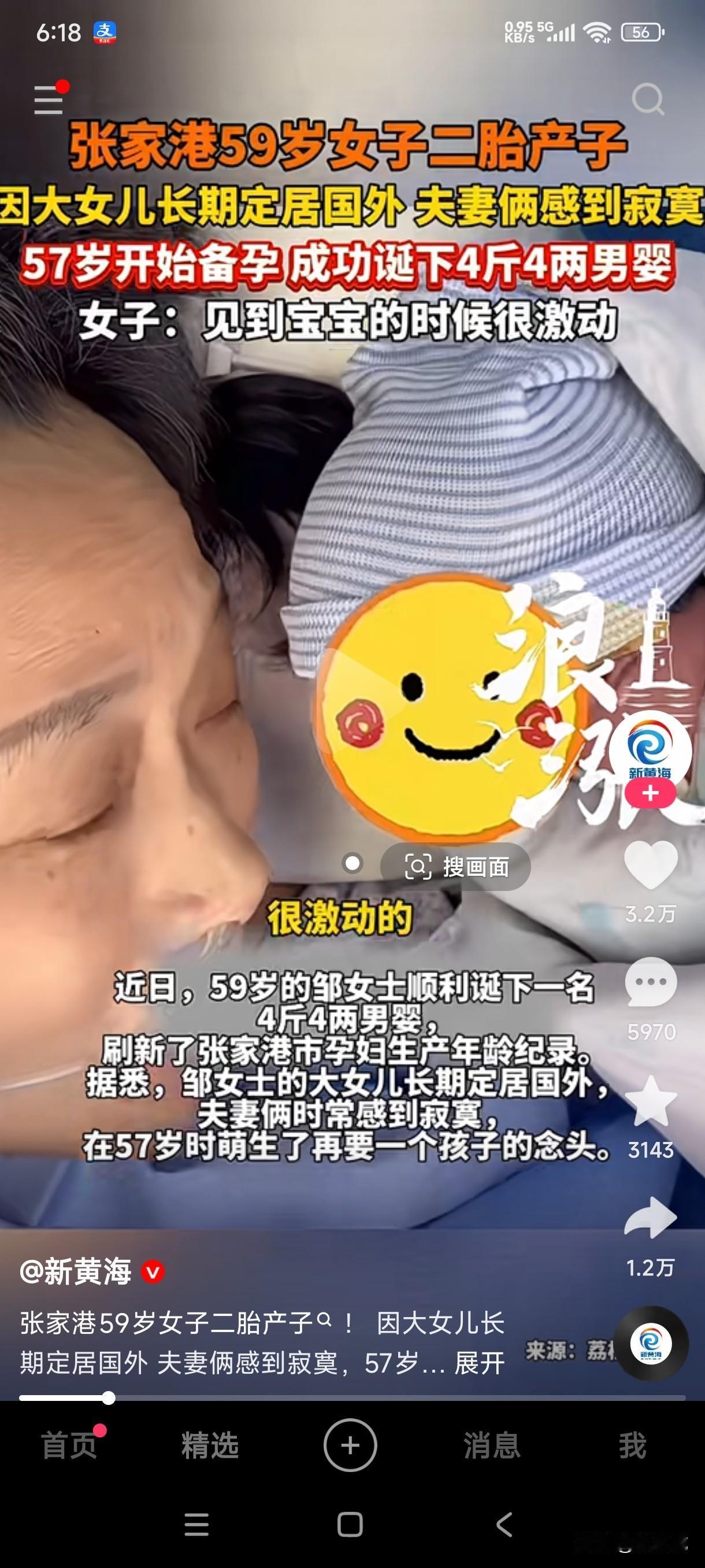 张家港一对夫妻因女儿长期定居国外,夫妻俩感到寂寞孤独,女子从57岁开始就备孕,59岁成功诞下一个4斤4两男婴。 59岁的高龄产妇真是让人吃惊,这是需要多大的勇气动了要二胎的念头,这如果不是万般无奈之下绝不会有这个想法的,毕竟将近60岁的年龄生孩子那是冒着生命危险的风险在生孩子,说句不好听点的话,如果万一发生意外大人和孩子都会有意想不到的危险,更别说保住大人或者孩子一方了。 庆幸的是这名59岁的女子平安顺利的生下了一名男婴,他们夫妻俩想要孩子的愿望也终于实现了,以后的生活也不会在孤独寂寞了,孩子的到来也为他们的老年生活添加了一份快乐,本来有女儿的陪伴,可是女儿长期定居国外指望不上,只能是再生一个陪伴他们夫妻俩,让他们的生活不在那么无聊,不在那么孤独寂寞。 将近60岁的年纪有的人都抱孙子了,但他们却有了自己的二胎孩子,这真是让人既羡慕又心疼不是吗?