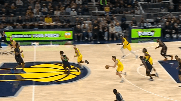 逐帧拆解:杰-胡夫的生涯之夜,高效29+9助队取胜图1快攻最前线切入篮下接弗菲高吊传球纵身一跃空接扣进。图2胡夫外弹接球虚晃后立即使用后蹬步启动交叉步突破,行进间主动寻求对抗后立即衔接丝滑转身抛投终结。图3胡夫拖车跟进至弧顶接球后随即和昆顿杰克逊发动边路挡拆配合,Slip快拆抢出身位优势接球后强硬隔扣篮下协防的米西。图4西卡近框接球“假抛真传”找到幽灵区埋伏的胡夫,胡夫接球起步过掉奎因后一记反篮终结躲避干扰。图5奎因沉退防止被卷切的西卡打穿篮下,内姆见状直接传给设置无球掩护的胡夫,胡夫接球立即出手三分惩罚奎因。图6同样的战术再来一次,西卡和后卫完成“Get”配合后立即空手移动借胡夫“Flare Screen”卷切篮下。胡夫设置无球掩护后顺势落位至三分线外,接球后出手三分惩罚沉退的奎因。图7早期进攻为西卡设置“Touch Screen”造成鹈鹕换防,下顺至篮下后和贝卡位伺机拼抢前场篮板,预判到篮板落点后迅速跃起单手将球托进篮筐。图8胡夫中路跟进快攻,接内姆传球起步过掉墨菲后直杀篮下直接起背扣终结。NBA