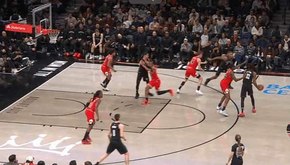 布泽利斯观察:进攻手感糟糕的情况下,凭借防守和拼抢帮助球队图1武器转身勾手不中,布泽利斯篮下凭借体型优势点抢到前场篮板后,迅速再次起跳补篮造成犯规。图2转换退防过程中,布泽利斯见托马斯上球给右翼的克劳尼迅速前去扑防,见克劳尼起手投篮立即起跳前扑高举右手成功帽掉克劳尼的三分。图3武器传球被曼恩抄截,布泽利斯底角迅速回防补救,追身钉板大帽曼恩的快攻上篮。图4特劳雷和夏普的边路挡拆发起,布泽利斯和武器守ice。见特劳雷跳起出球给夏普,布泽利斯立即伸出长臂起跳破坏传球,随后再迅速二次起跳控制住球权。图5布泽利斯高举右手碎步上迎扑防黑豹,随后滑步跟防完全不失位,凭借体型优势笼罩住黑豹的同时右手控制、左手干扰,见黑豹起跳终结,布泽利斯立即起跳排球大帽拒绝。图6走下线穿过掩护墙后不断横移跟防克劳尼,被对抗顶开后见克劳尼起身终结,迅速调整好脚步起跳大帽拒绝(当然这球有干扰球的嫌疑)。NBA