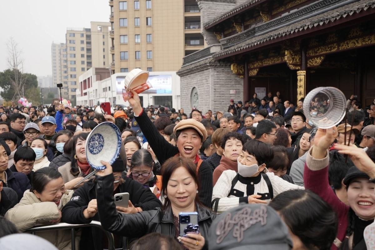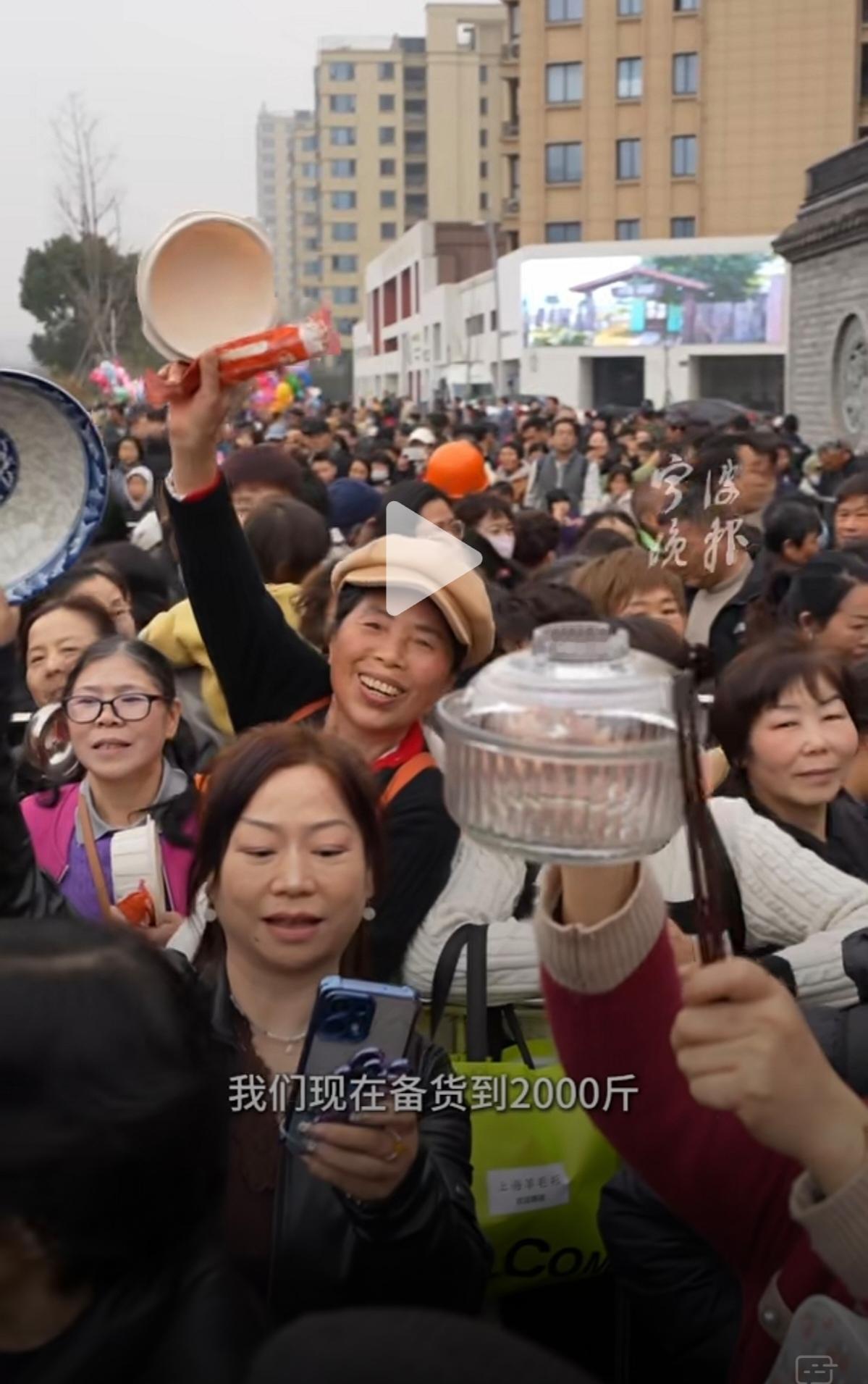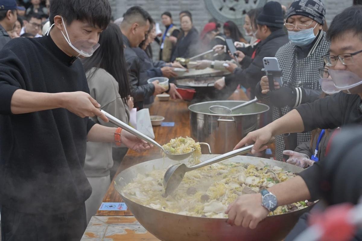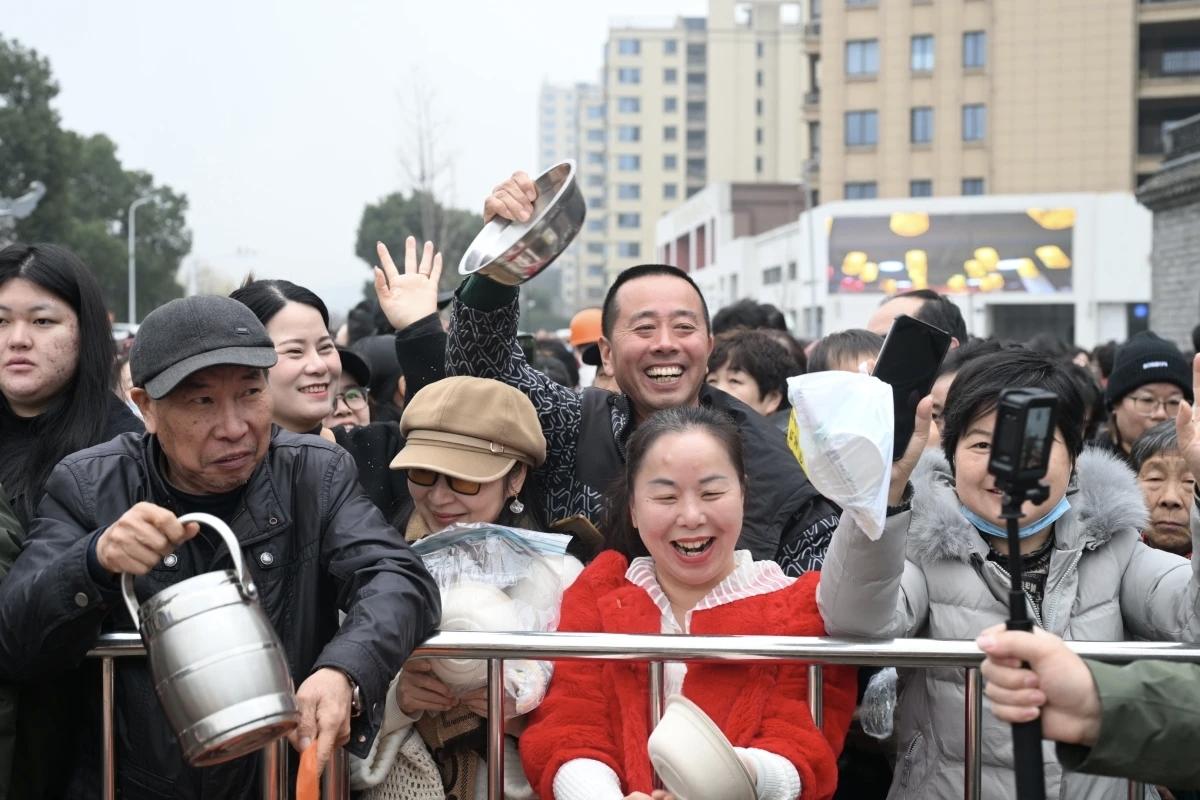 前些天合川呆呆的刨猪宴,火爆全网!今天宁波鄞州区云龙村,云下牧场和网红“月半星人”联合举办的年猪宴,也是火爆全场。 鄞州区云龙镇云龙村家风家训馆门口,一大早就聚集了大批的粉丝和食客。大家自备碗筷,排队等待年猪宴的开始。 宁波这次的年猪宴,结合了宁波本地的水磨年糕,煮出了一锅锅的“节水年糕汤”。活动现场,煮了近两千近的水磨年糕。 一碗碗香气腾腾的猪肉年糕汤,在工作人员的打制下,分发给了热情的食客们。现场气氛很活跃,但也很井然有序!像极了在举办年俗节,就当是预热了过年的氛围。 这次的年猪村宴,结合特产水磨年糕,也寓意着“年糕年糕年年高,今年更比去年好”的含义。这样的互动活动,将欢乐传递在乡间地头,还是很有新春年味的!